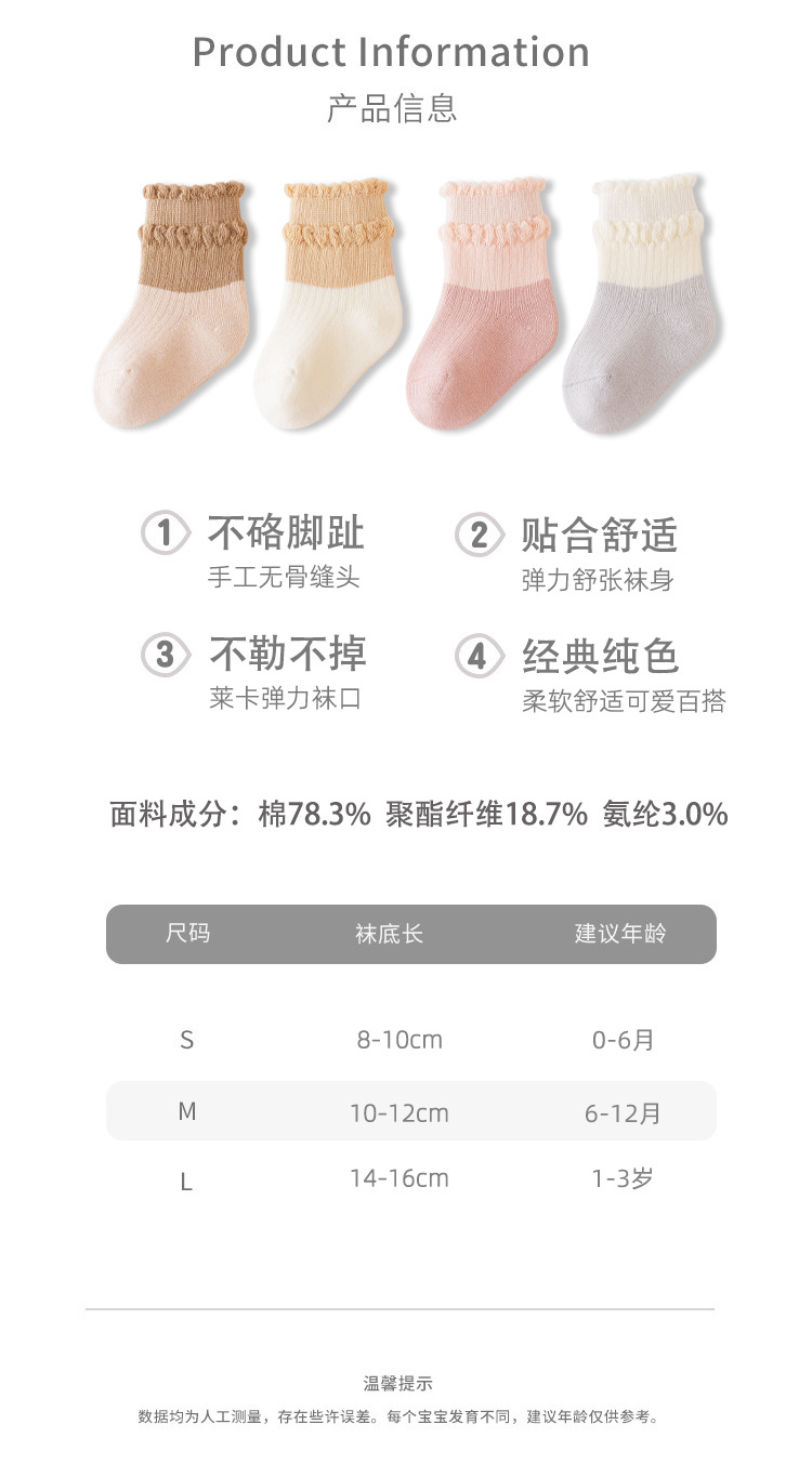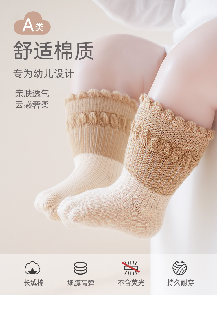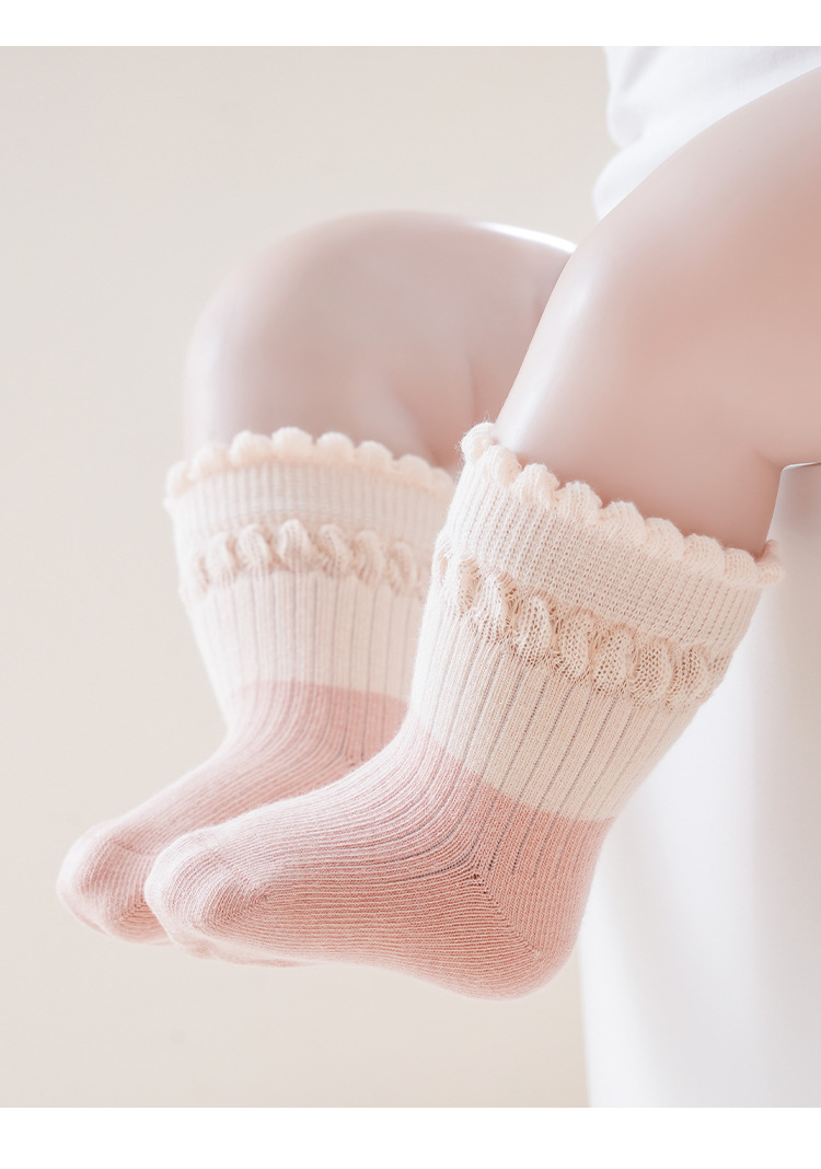 아기 양말 봄과 가을 중간 튜브 양말 솔리드 컬러 퓨어 코튼 뼈없는 소녀 아기 클래스 귀여운 레이스 코튼 양말