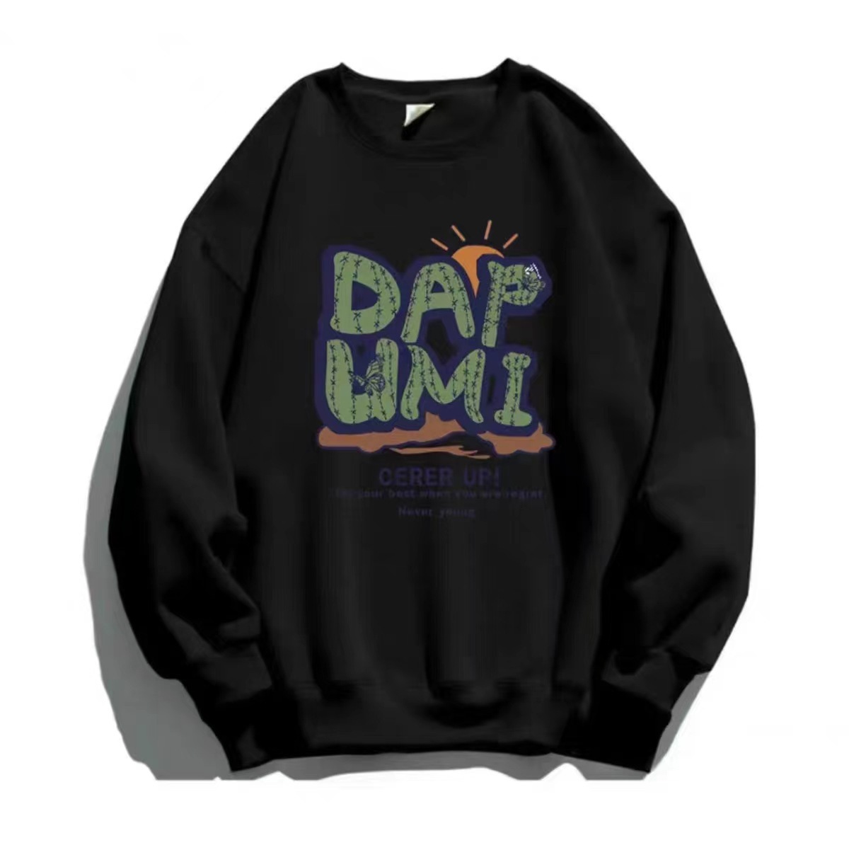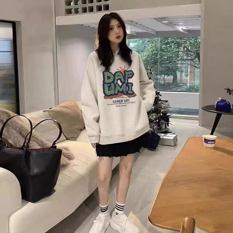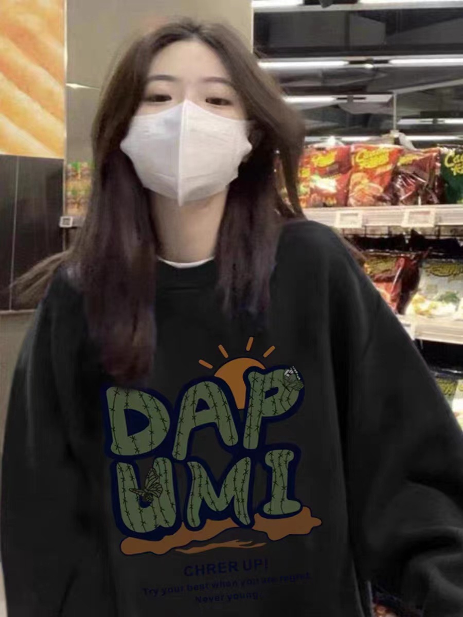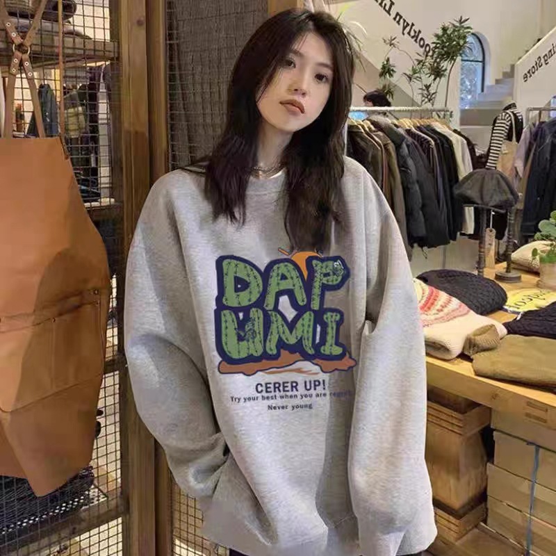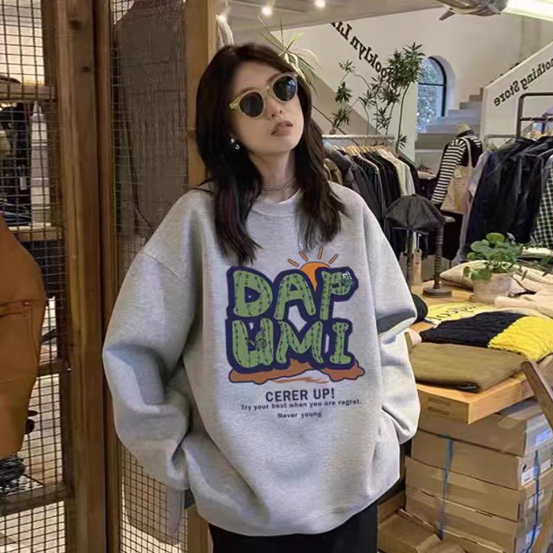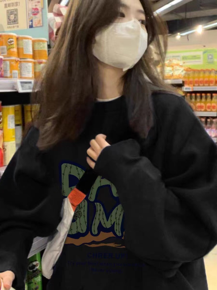 새로운 중국면 크루 넥 스웨트 여성 아메리칸 스타일 레트로 오버 사이즈 패션 브랜드 중국면 긴 소매 탑 게으른 스타일 땀스토어 가기