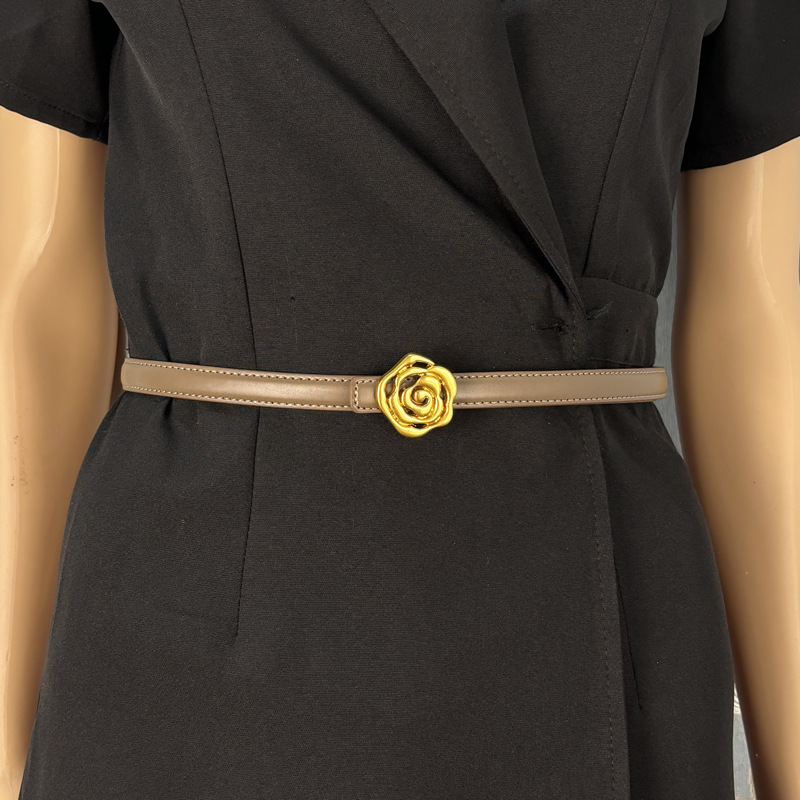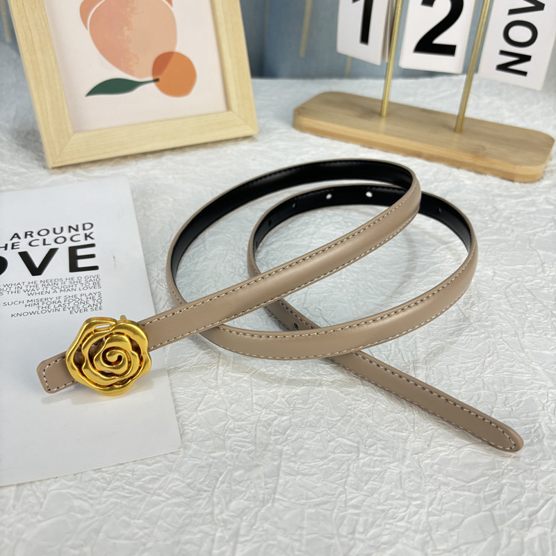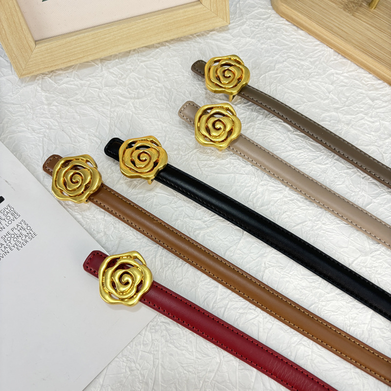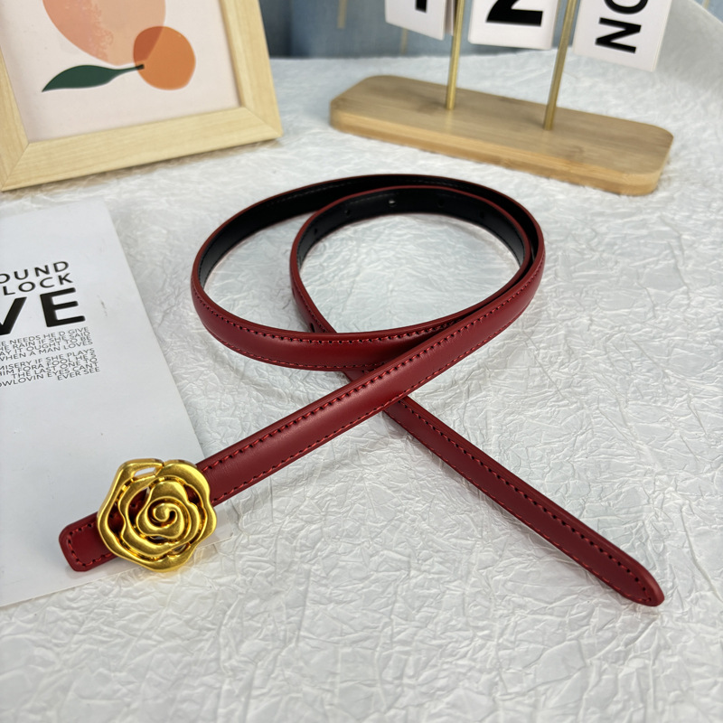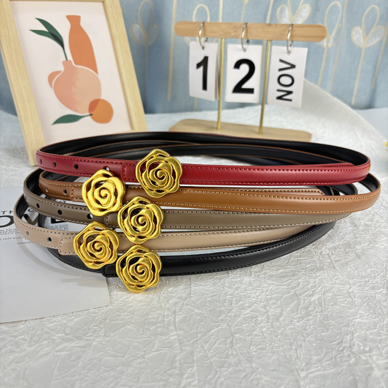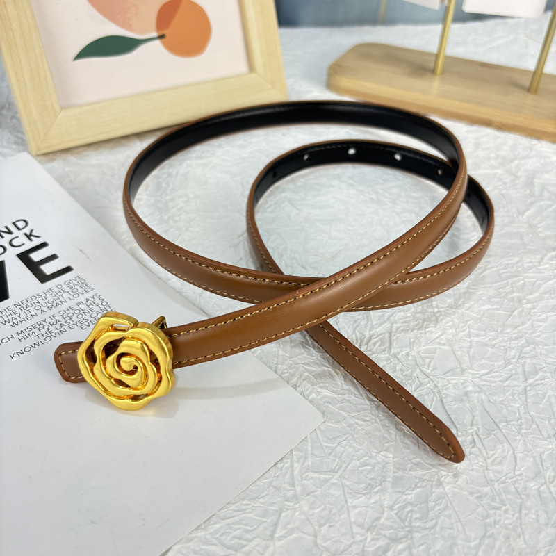 작은 벨트 여성용 로즈 정품 가죽 Cowhide 모든 경기 청바지 얇은 벨트 틈새 디자인 감각 장식 원피스 벨트스토어 가기
