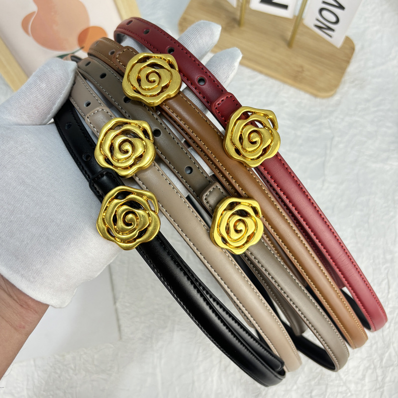 작은 벨트 여성용 로즈 정품 가죽 Cowhide 모든 경기 청바지 얇은 벨트 틈새 디자인 감각 장식 원피스 벨트