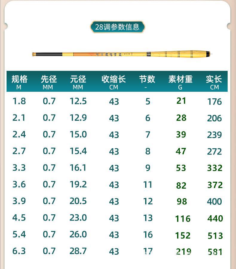 • 3.0m -28 톤 [고탄소 수축 후 43cm 전용] 처음 세 부분 보내기 + 낚시 대형