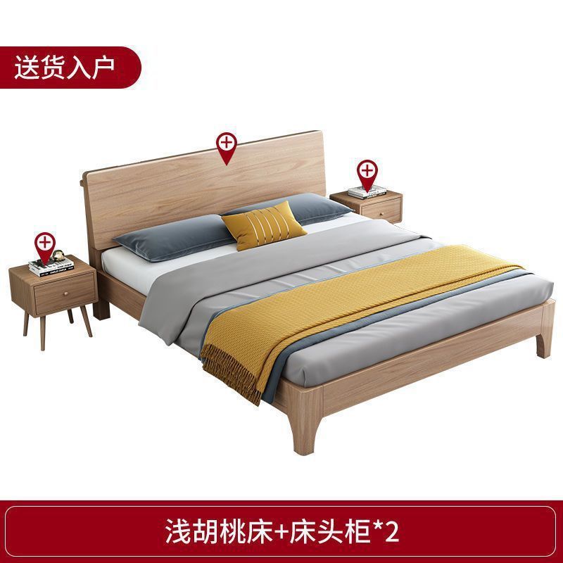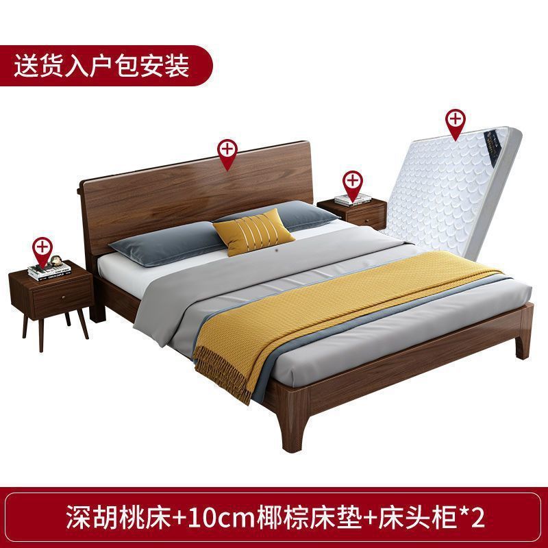 월넛 솔리드 우드 침대 두껍고 두꺼운 싱글 침대 더블 침대 침실 가정용 스토리지 침대 작은 아파트 호텔 아파트스토어 가기