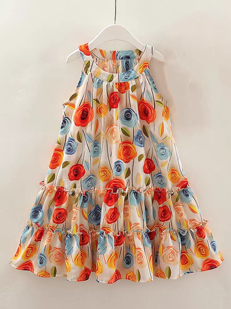 2025 여자 여름 원피스 보헤미안 휴일 목 원피스 모자를 위한 귀여운 장미 원피스스토어 가기