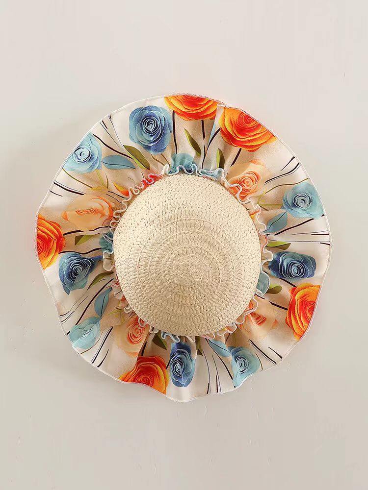 2025 여자 여름 원피스 보헤미안 휴일 목 원피스 모자를 위한 귀여운 장미 원피스