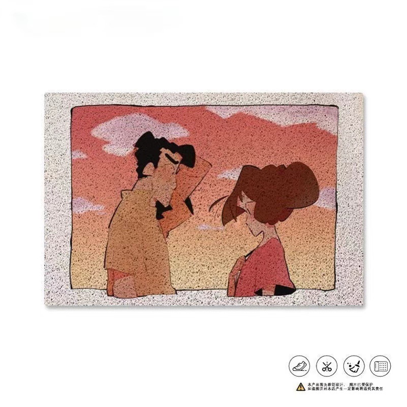 크레용 작은 새 입구 매트 현관 문 먼지 문지르기 매트 내마모성 절단 실크 링 매트 머리카락 세대