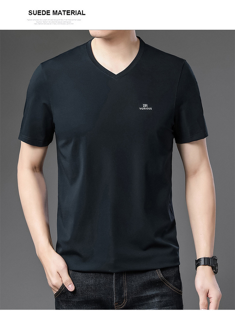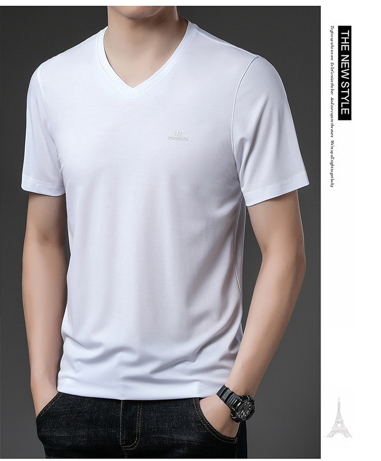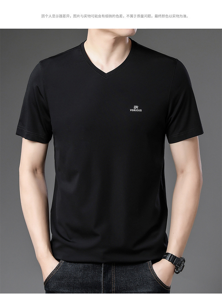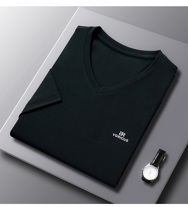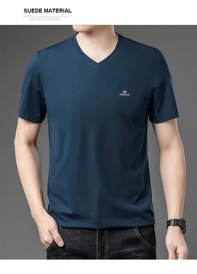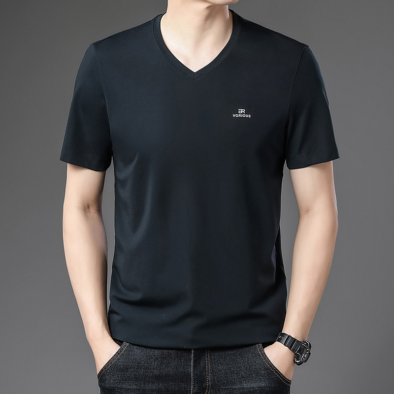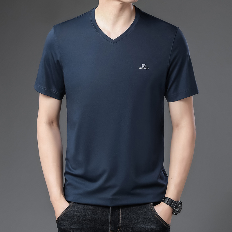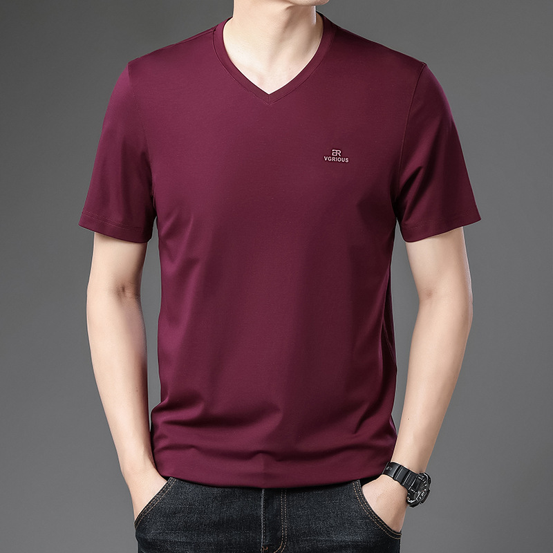 뉴 멀 베리 실크 반팔 티셔츠 남성용 V 넥 얇은 여름 아이스 실크 캐주얼 남성용 탑 루즈 치킨 하트 칼라 티셔츠