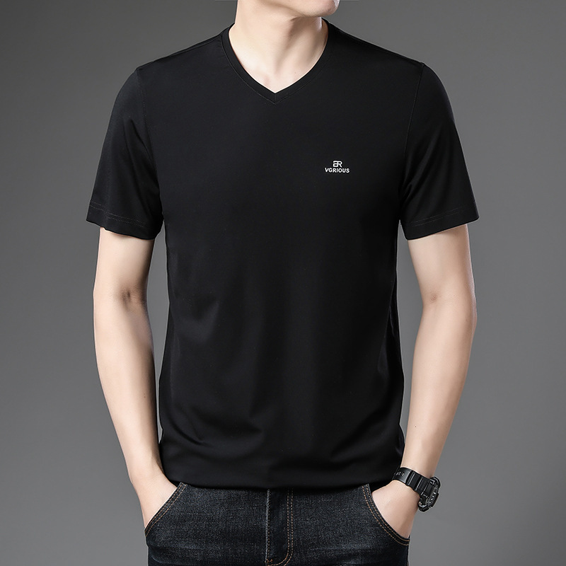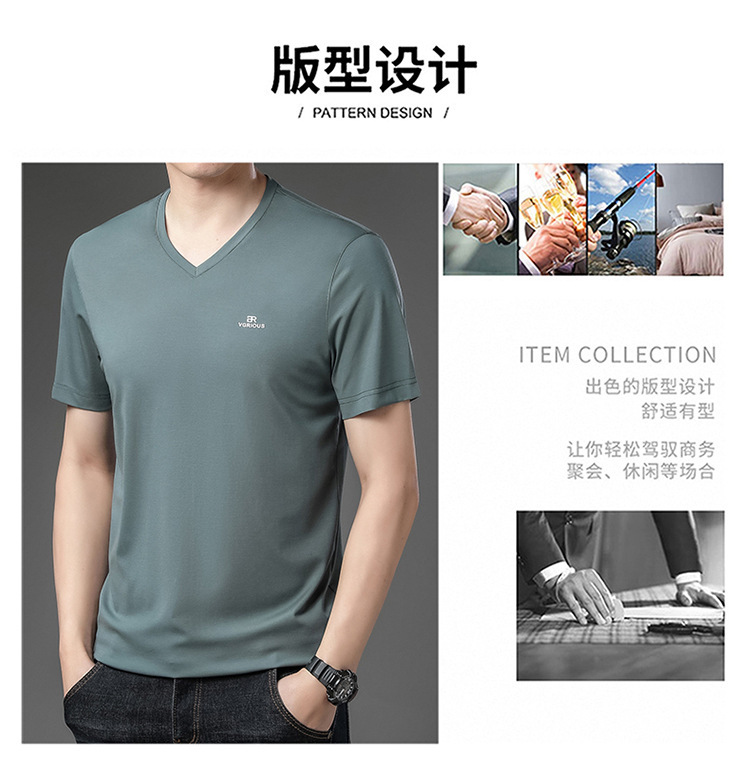 뉴 멀 베리 실크 반팔 티셔츠 남성용 V 넥 얇은 여름 아이스 실크 캐주얼 남성용 탑 루즈 치킨 하트 칼라 티셔츠스토어 가기
