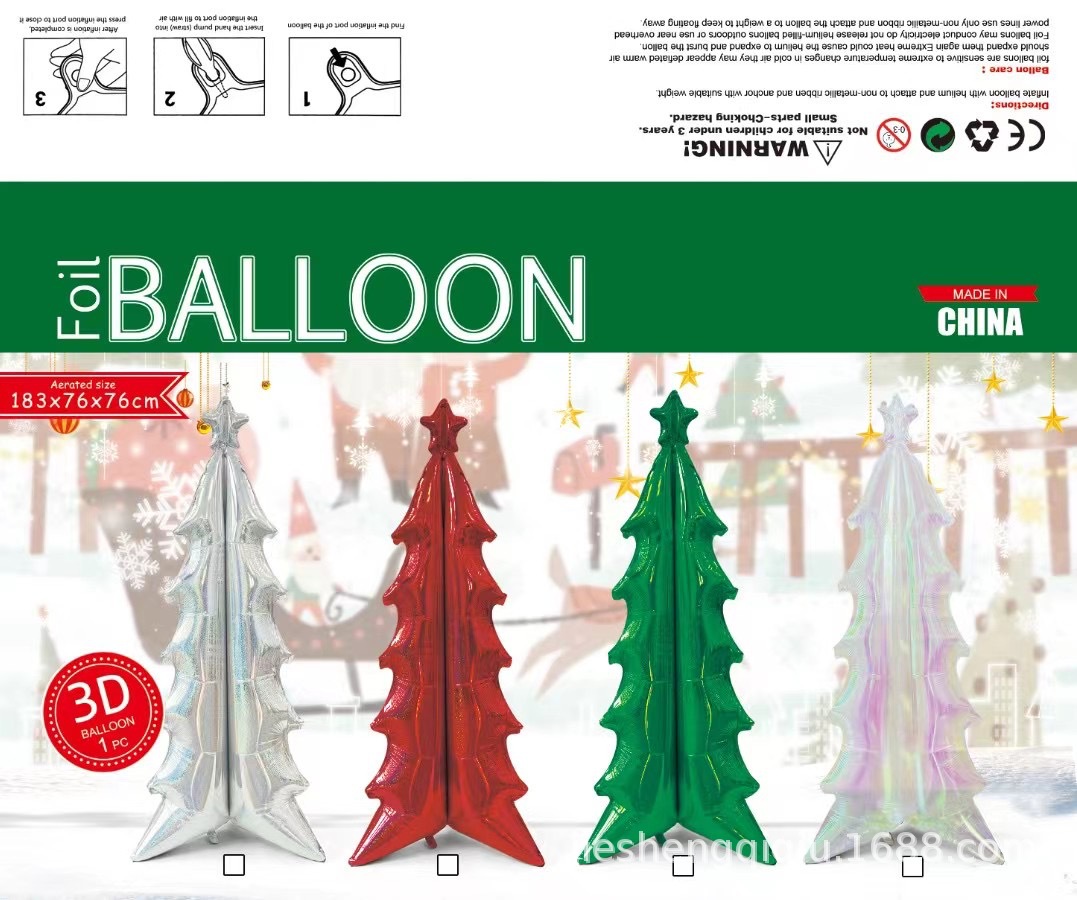 새로운 3D 입체 서 레이저 매직 컬러 크리스마스 트리 알루미늄 필름 풍선 크리스마스 이브 파티 장식스토어 가기