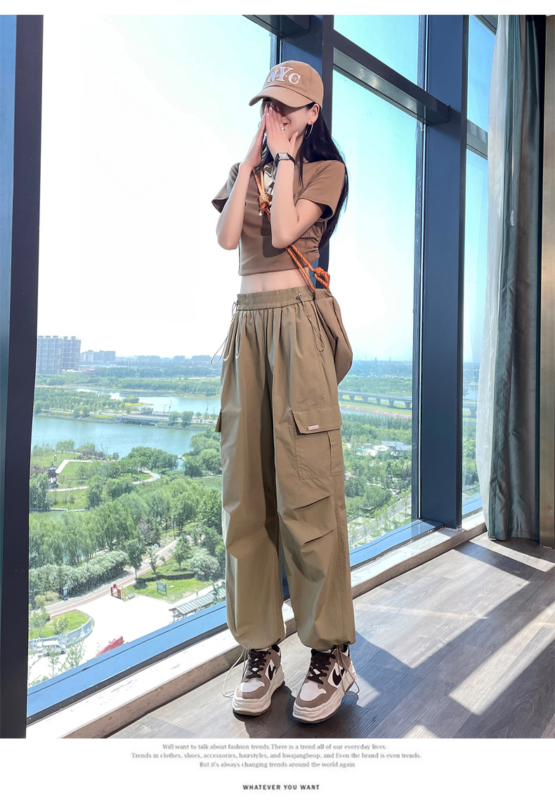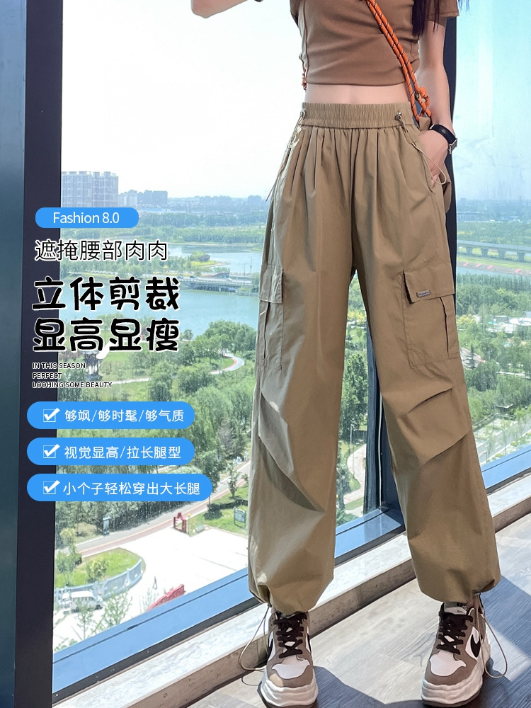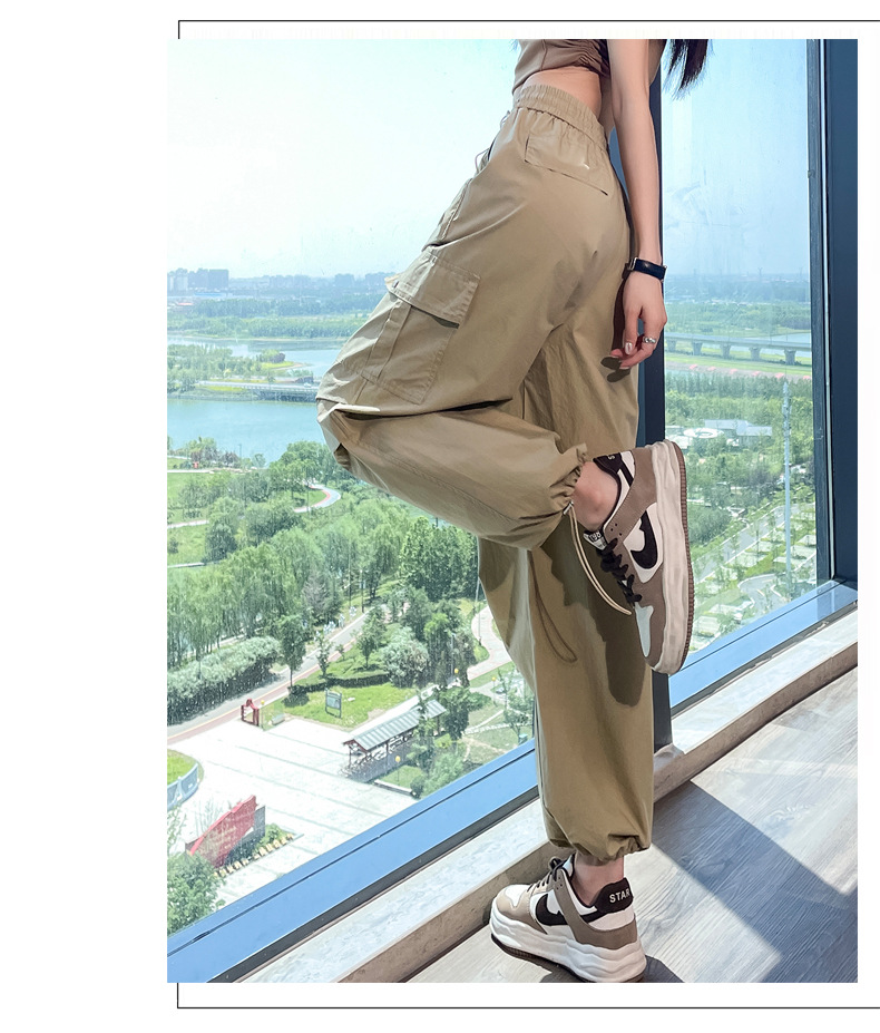 카키 빠른 건조 크록 바지 여성 여름 새로운 얇은 야외 등산 스포츠 미국식 아이스 실크 낙하산 바지스토어 가기