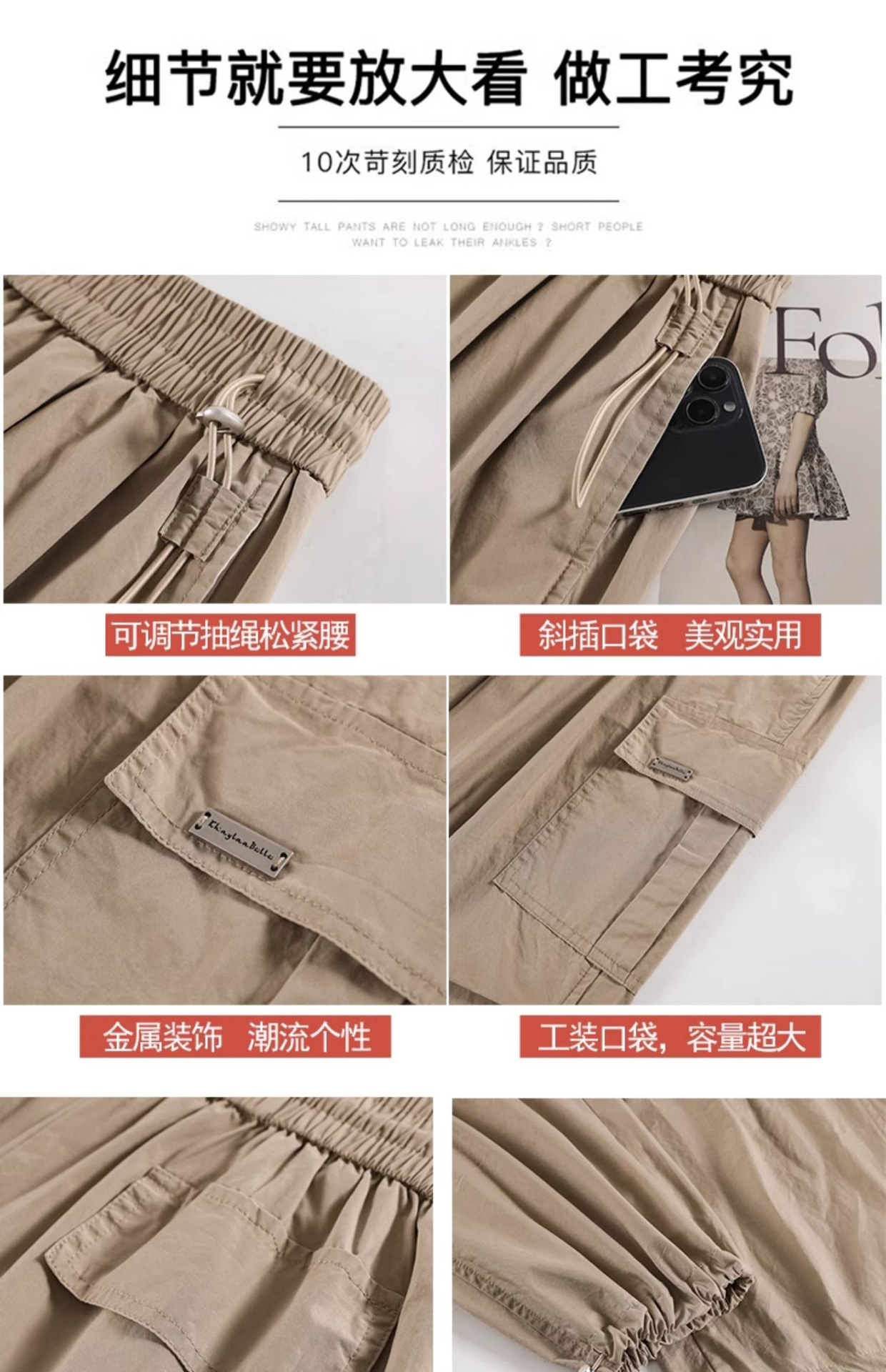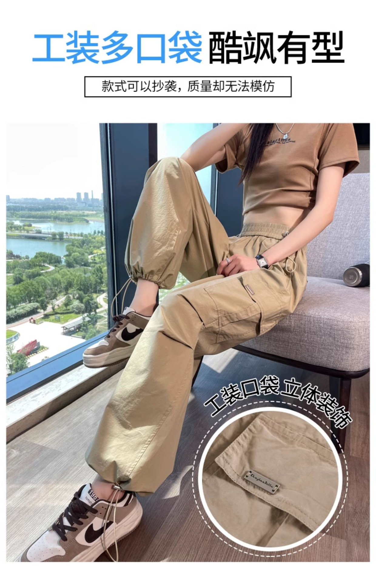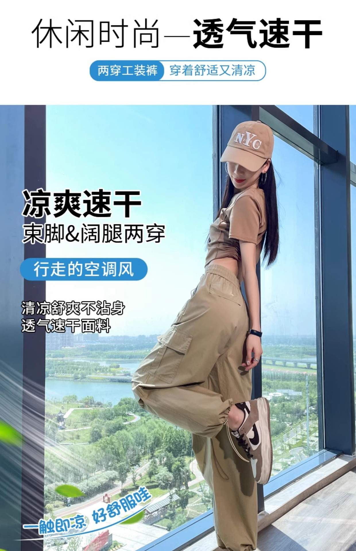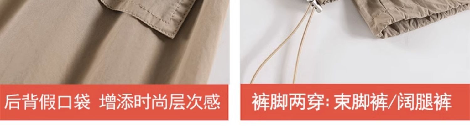 카키 빠른 건조 크록 바지 여성 여름 새로운 얇은 야외 등산 스포츠 미국식 아이스 실크 낙하산 바지