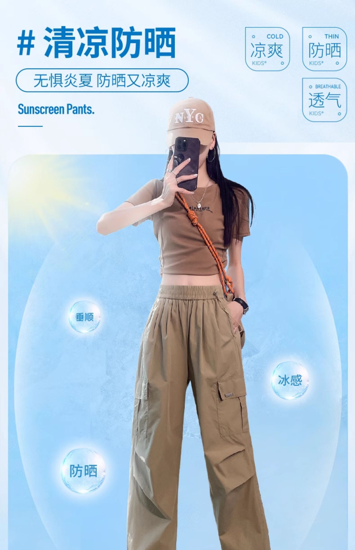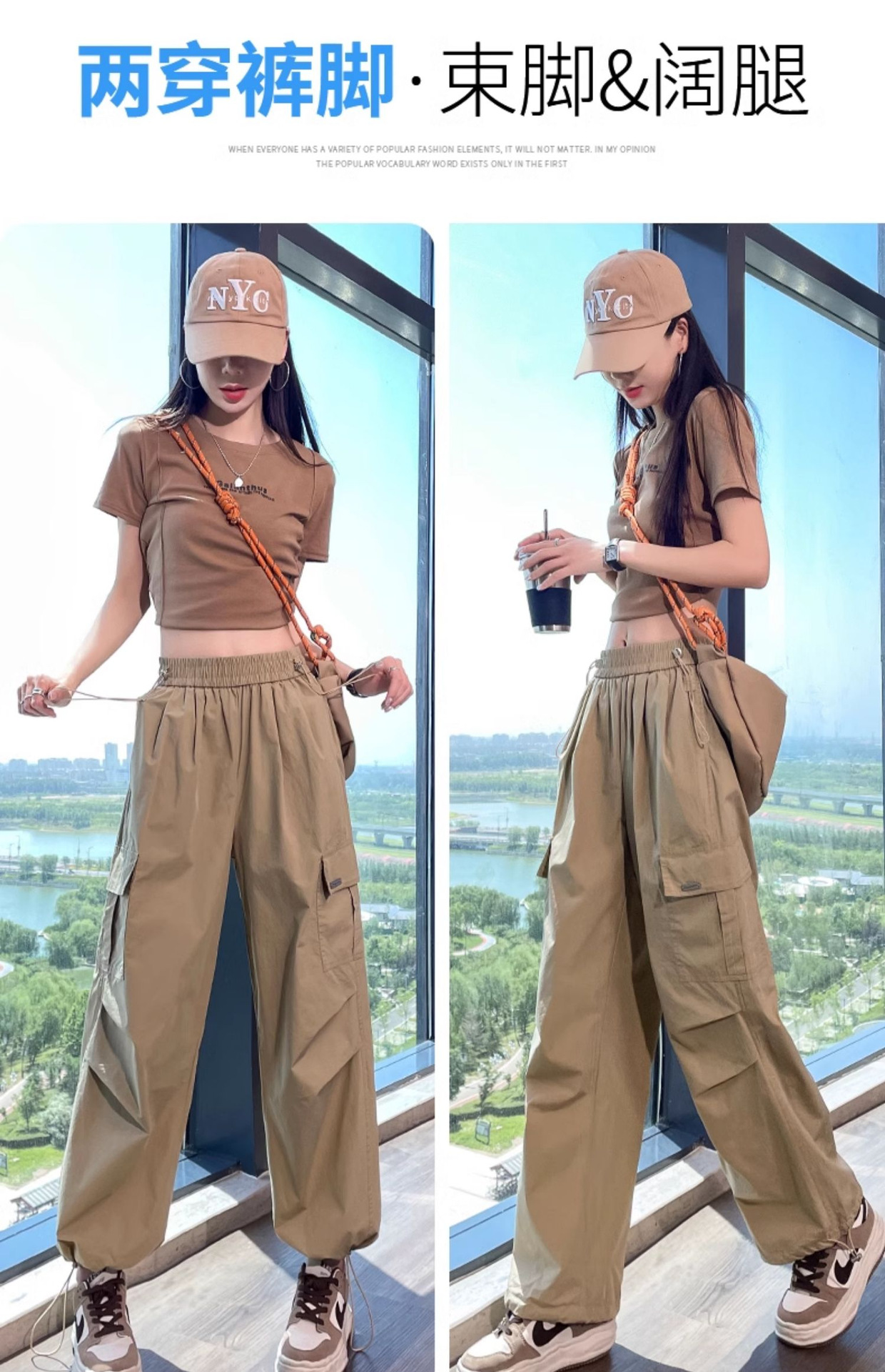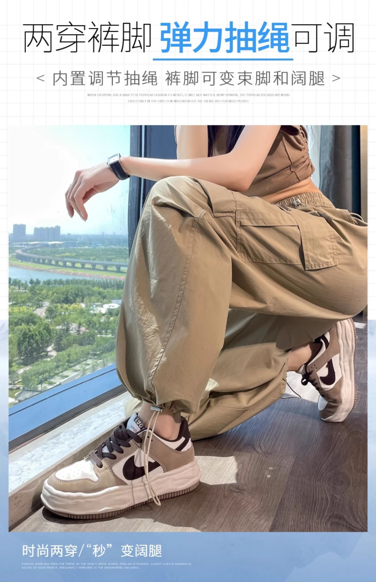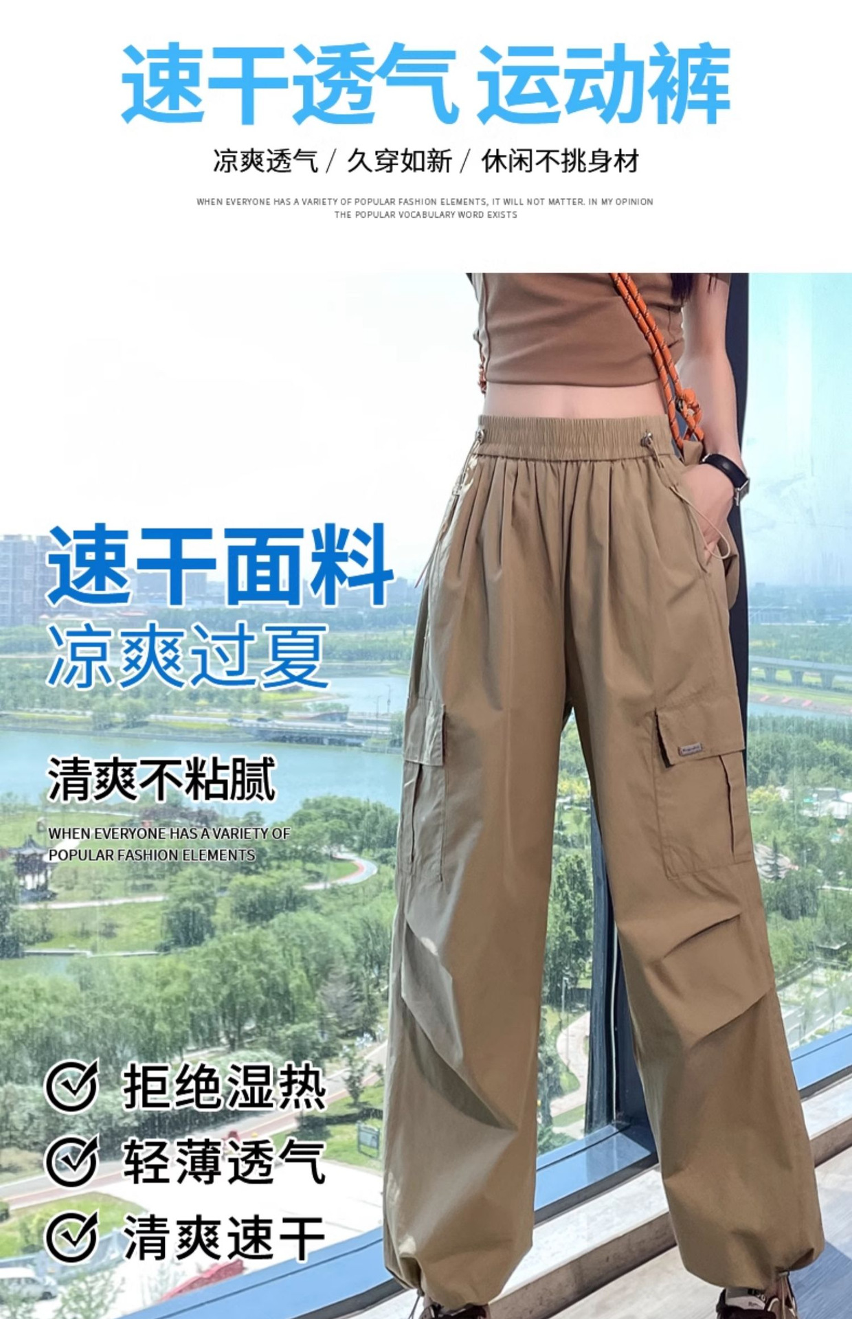 카키 빠른 건조 크록 바지 여성 여름 새로운 얇은 야외 등산 스포츠 미국식 아이스 실크 낙하산 바지