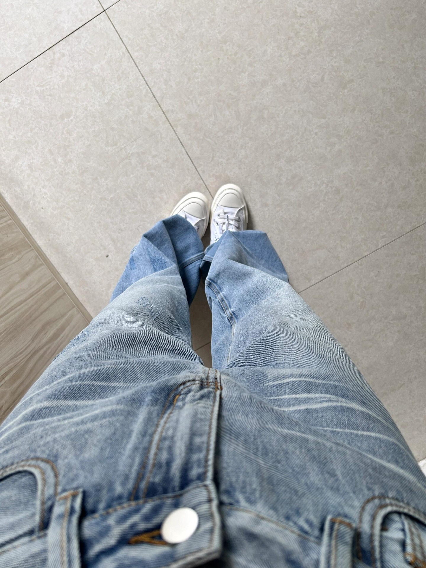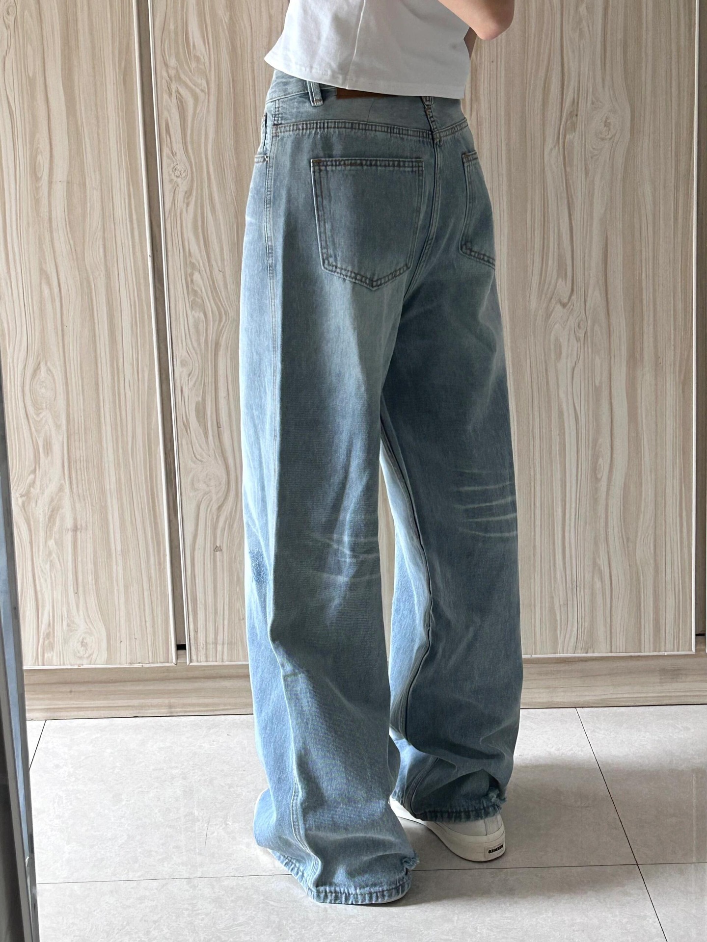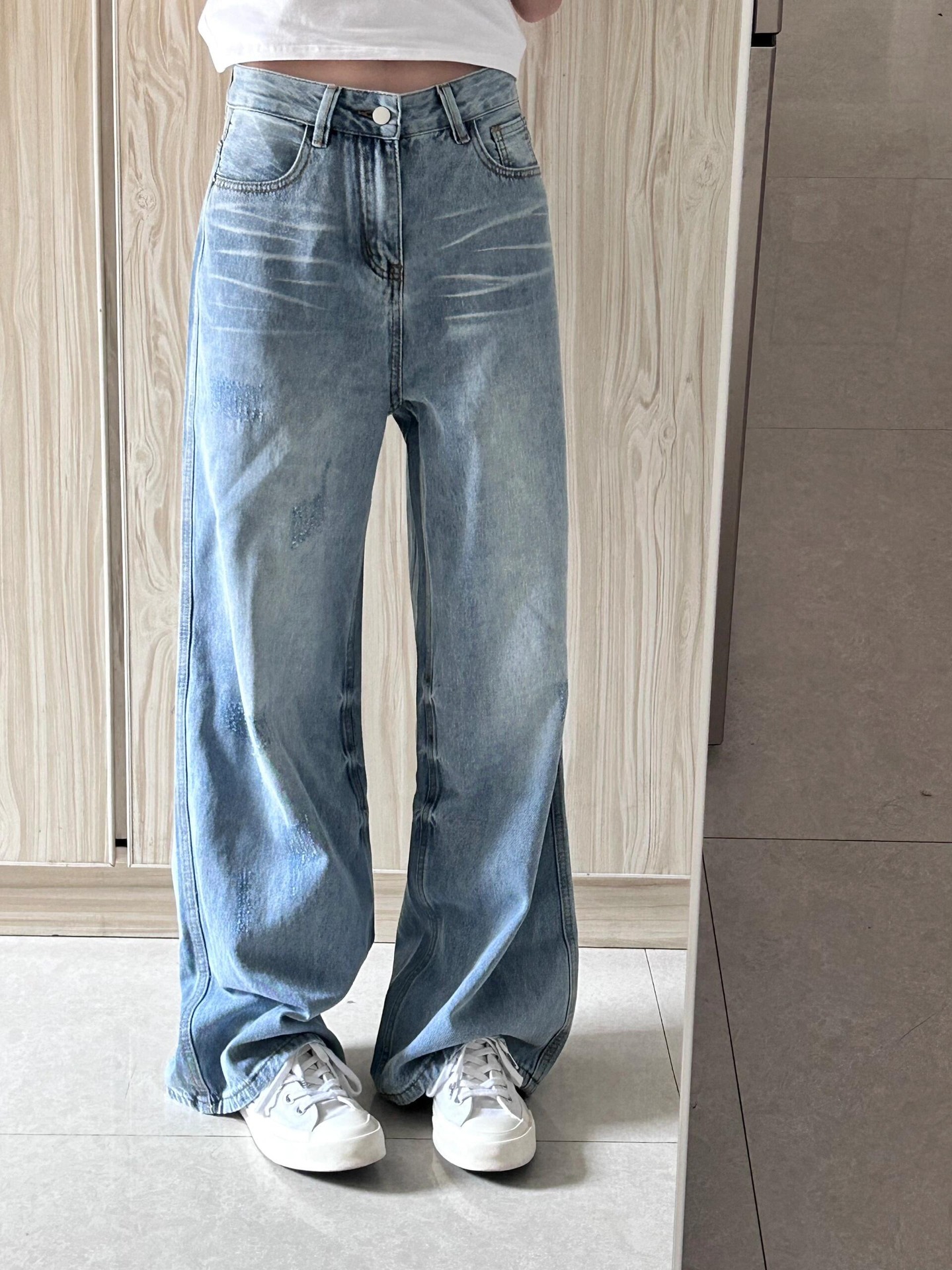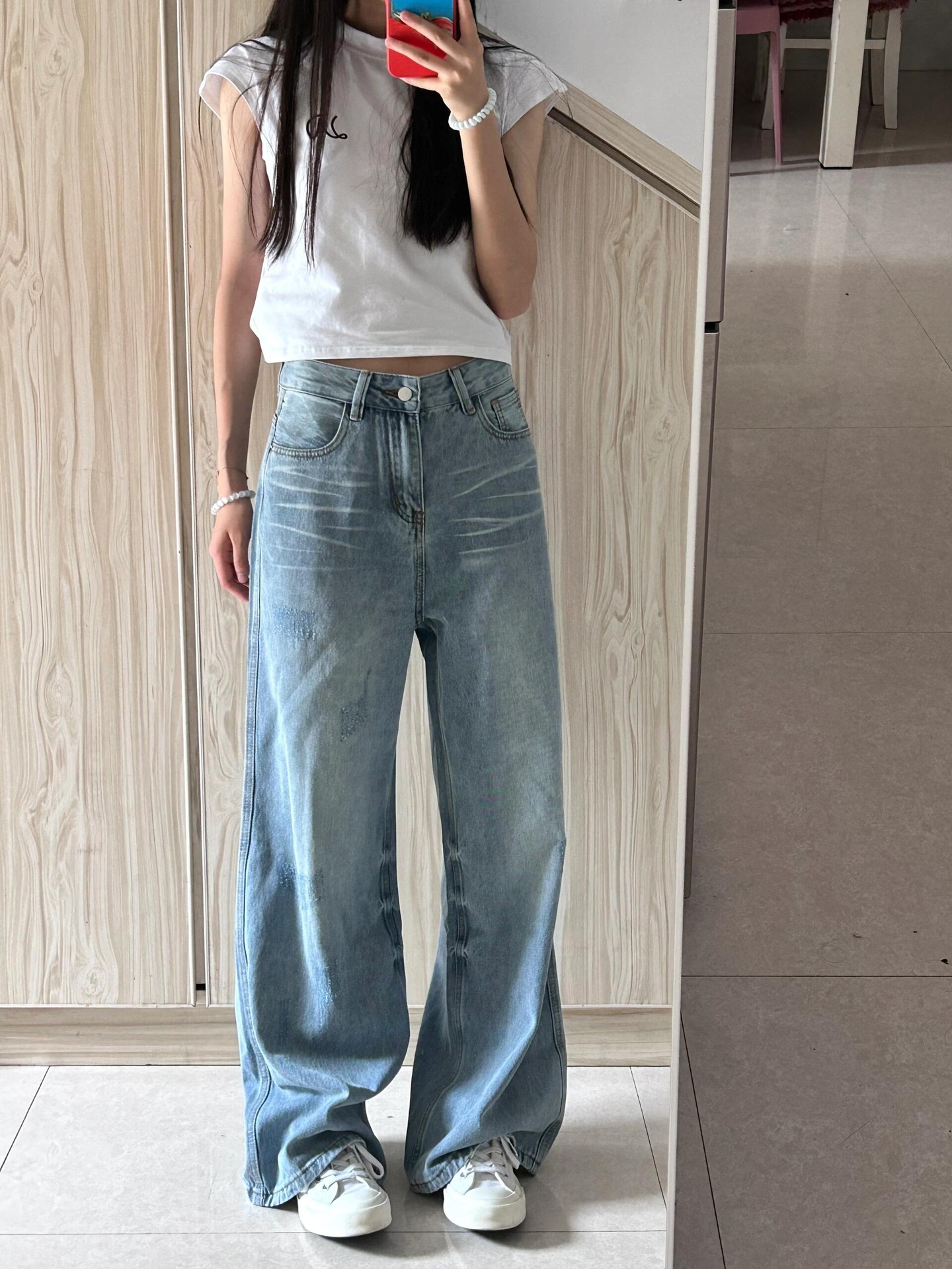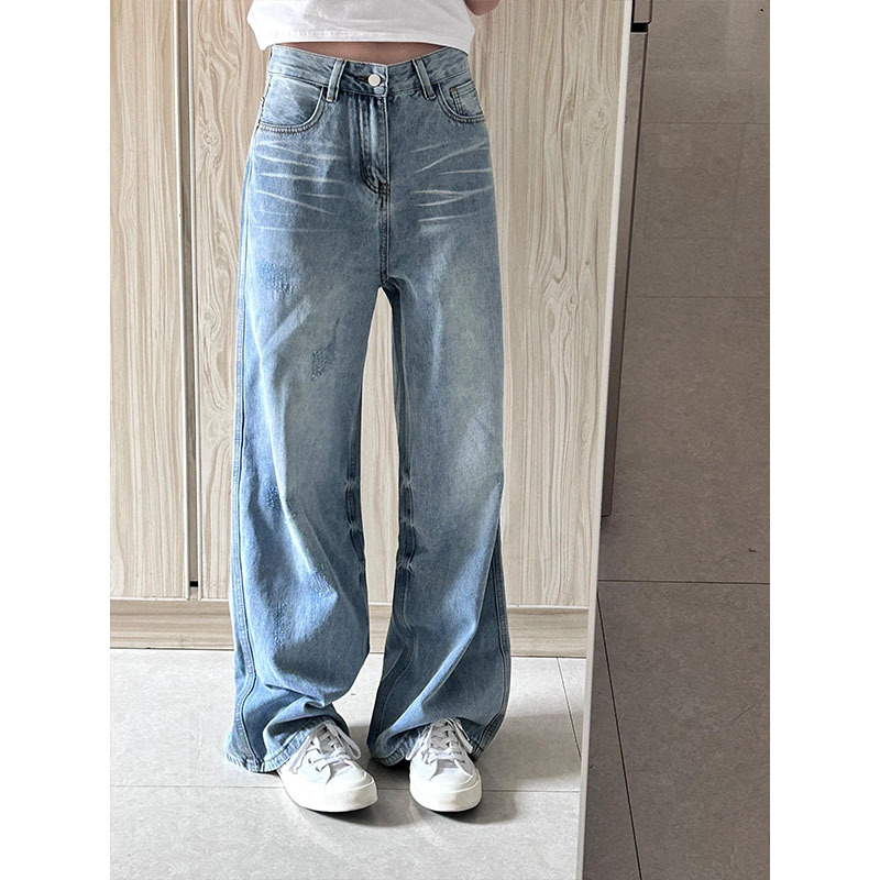 빈티지 라이트 블루 느슨한 넓은 다리 청바지 여성의 여름 새로운 순수한 욕망 높은 허리 슬리밍 스트레이트 팬츠스토어 가기