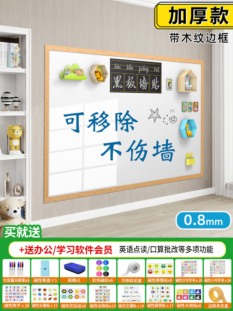 • 화이트보드 [두꺼운 전용모델] - 나뭇결 프레임(벽 손상 없음) - 80x100cm