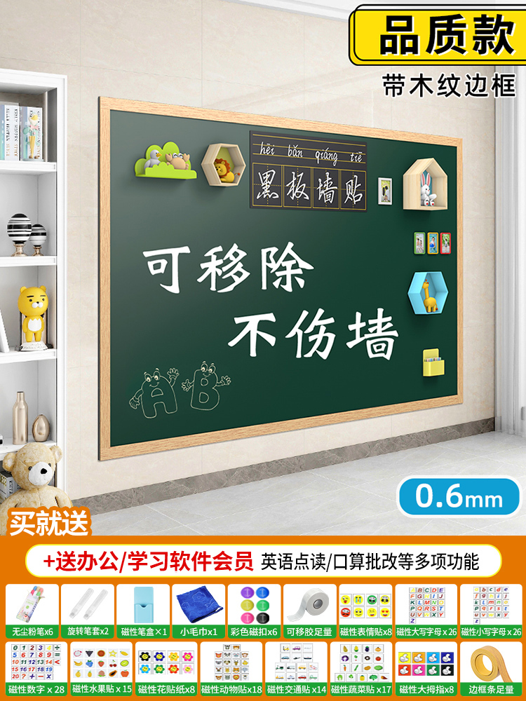 • 칠판실형 [고급모델] 나뭇결 프레임(벽 손상 없음)-60x150cm