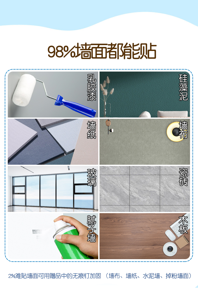• ♥♥♥♥♥[두꺼운 전용 모델] 더욱 매끄럽게 접착됩니다. (벽을 손상시키지 않고 제거 가능)