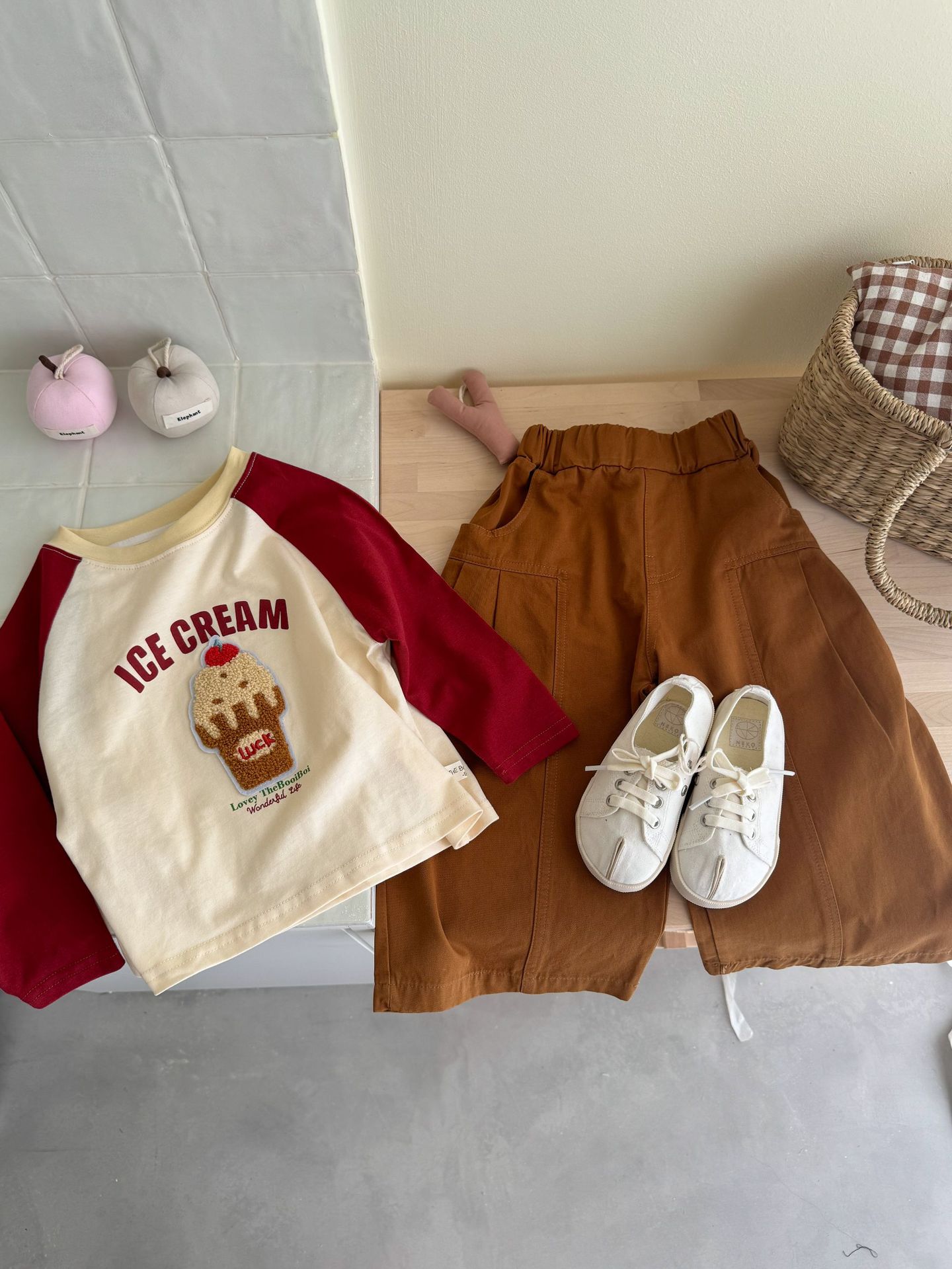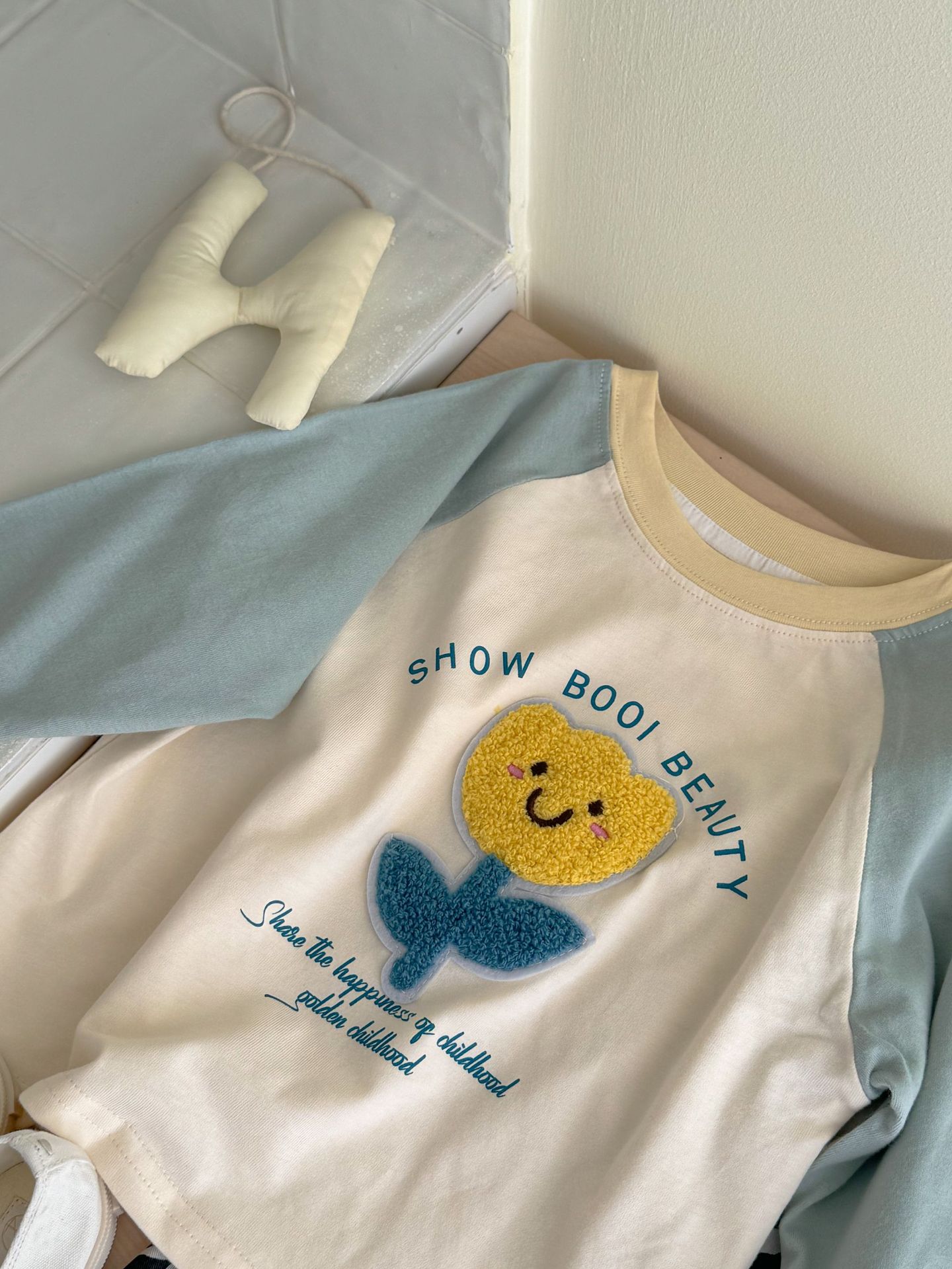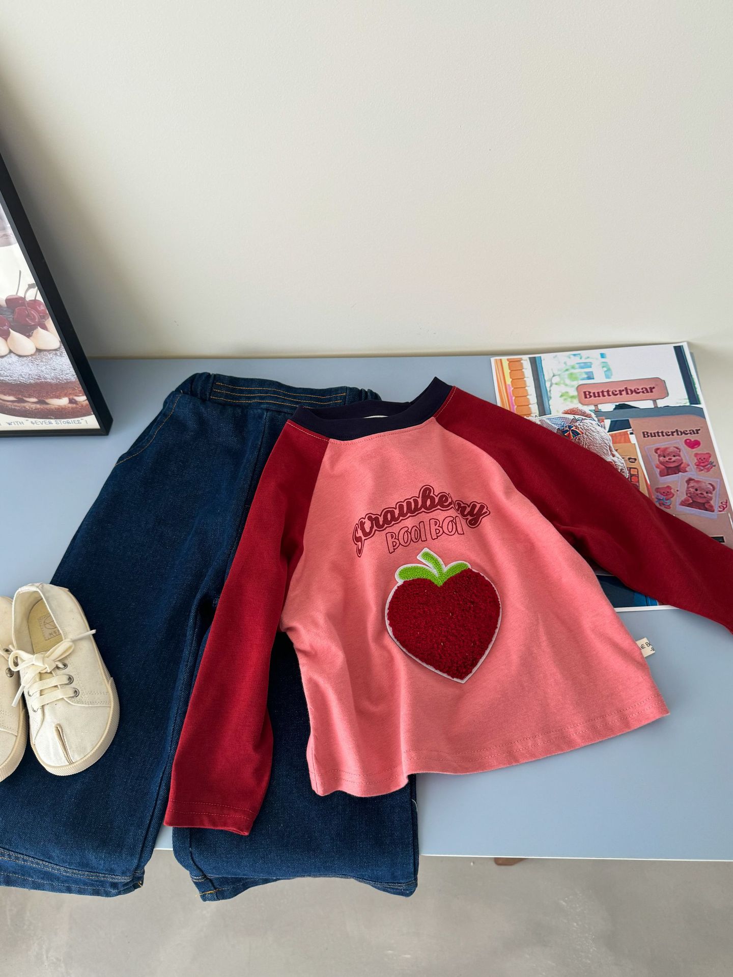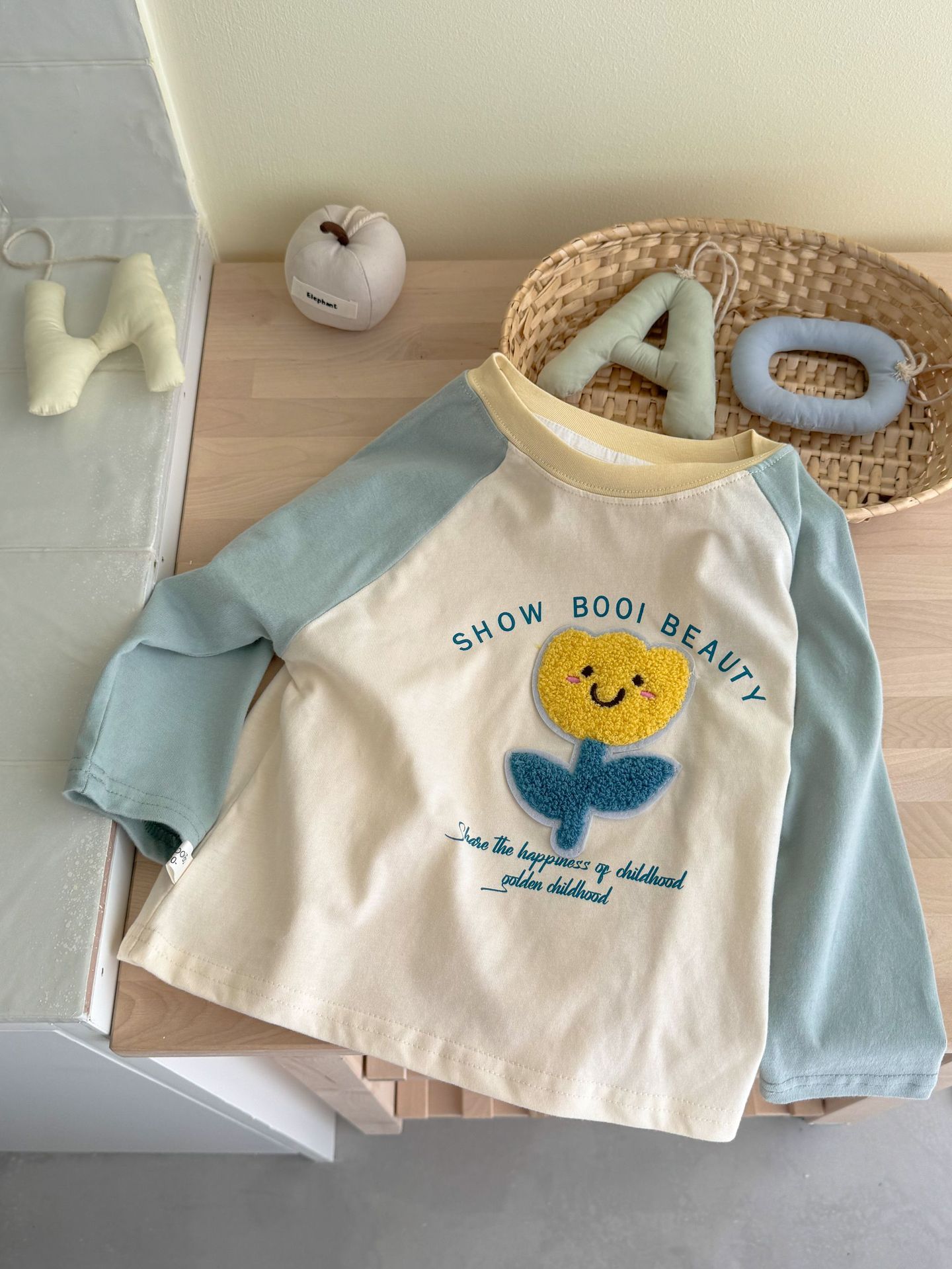 밀밭 시즌 어린이 라벨링 컬러 매칭 샌딩 베이스 셔츠 소년과 소녀 귀여운 라글란 소매 긴팔 티셔츠 탑