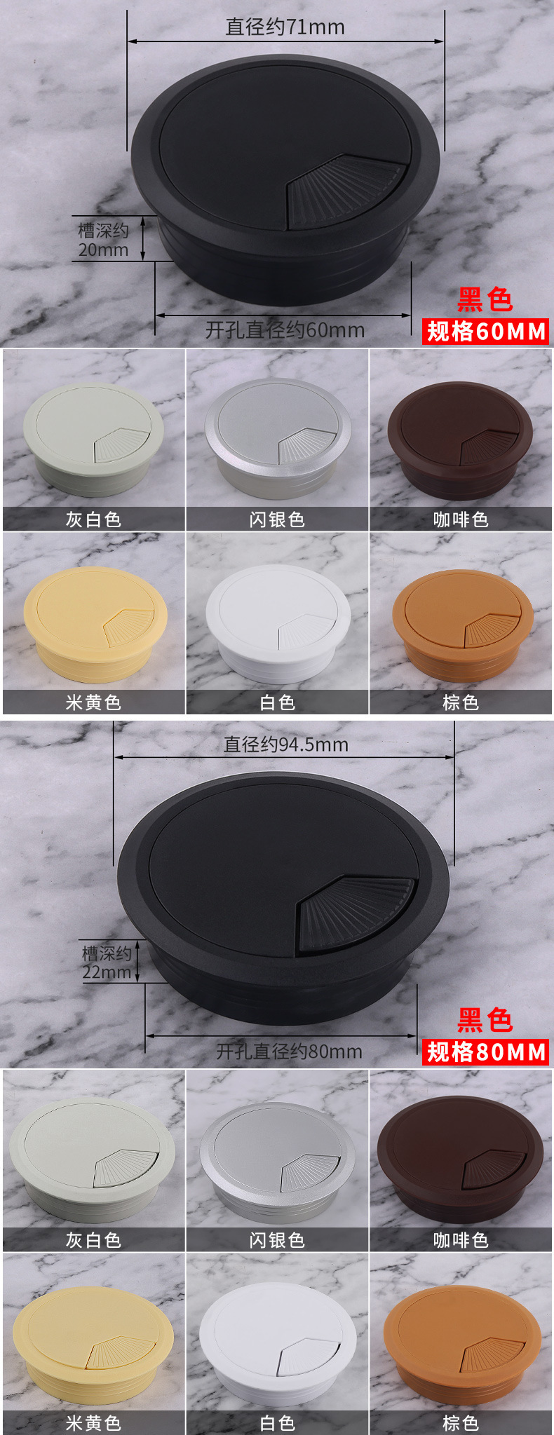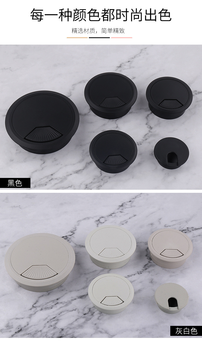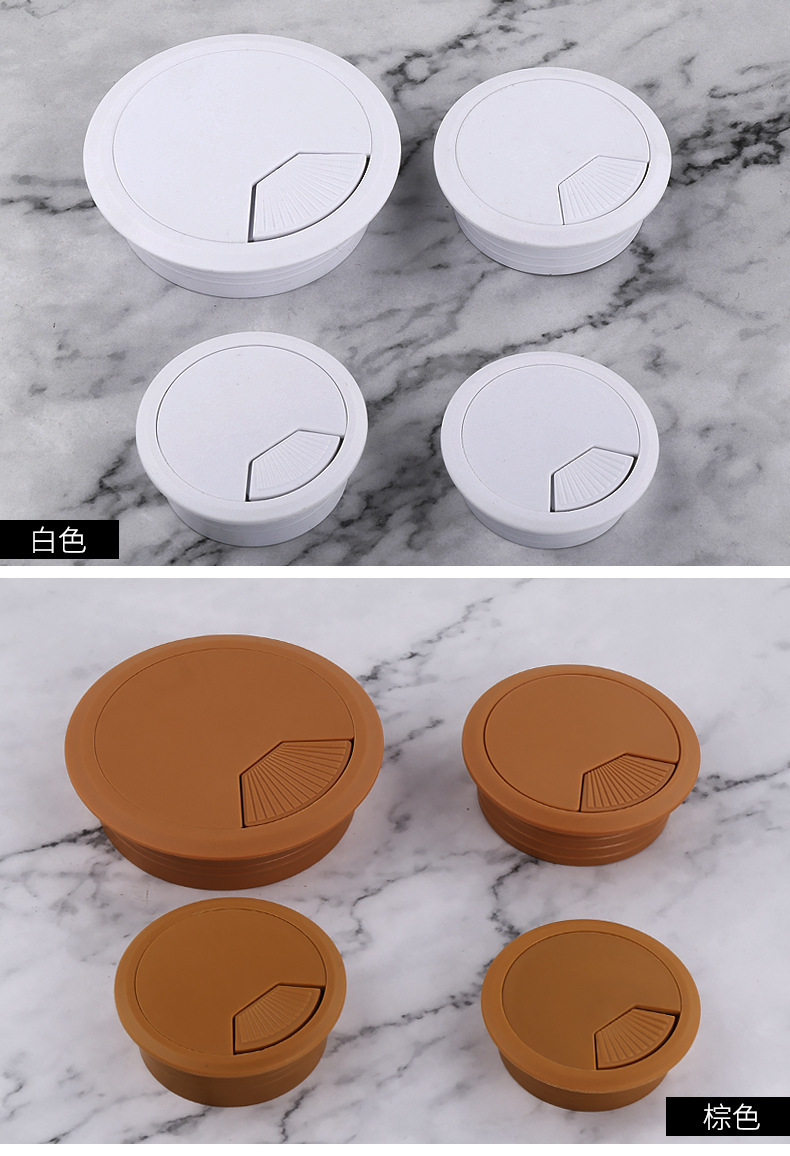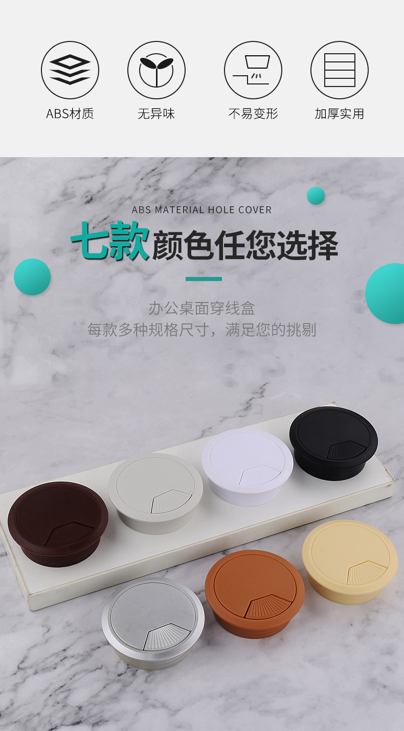 데스크탑 와이어 홀 커버 컴퓨터 테이블 데스크탑 스레딩 박스 우드 그레인 블랙 화이트 라운드 먼지 방지 스레딩 박스 도매 ABS