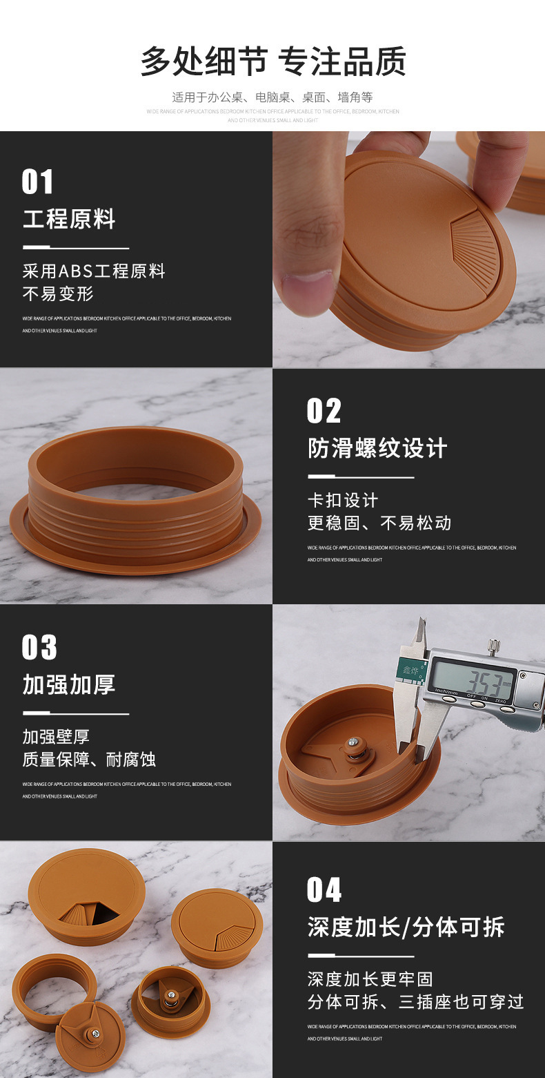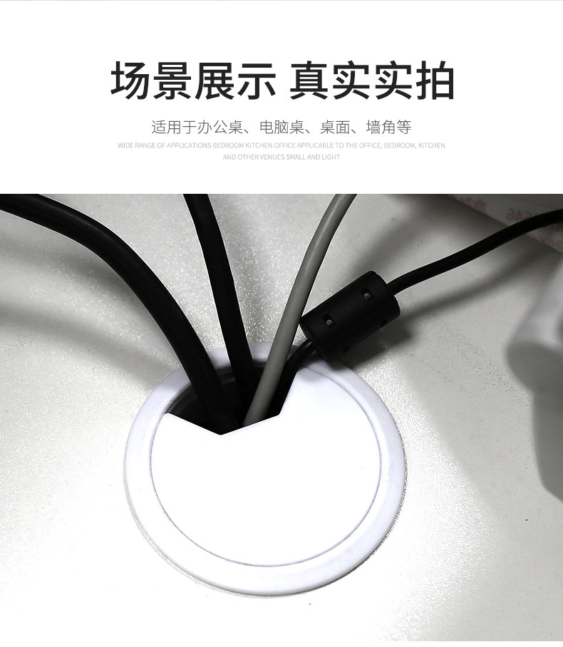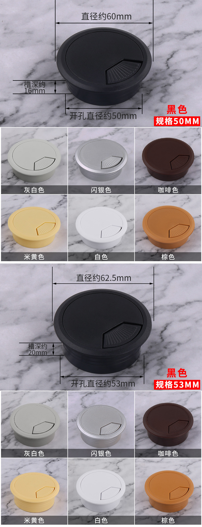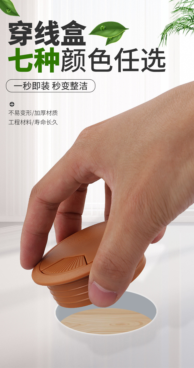 데스크탑 와이어 홀 커버 컴퓨터 테이블 데스크탑 스레딩 박스 우드 그레인 블랙 화이트 라운드 먼지 방지 스레딩 박스 도매 ABS
