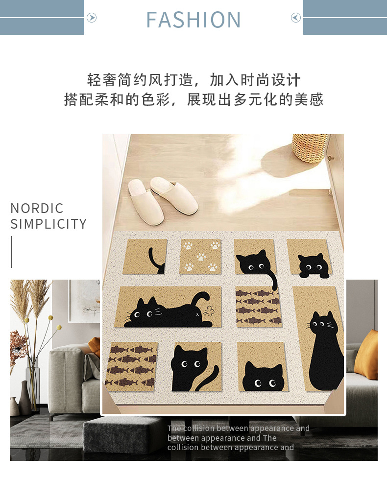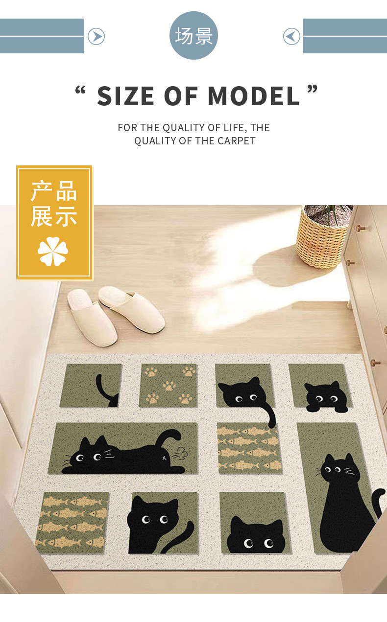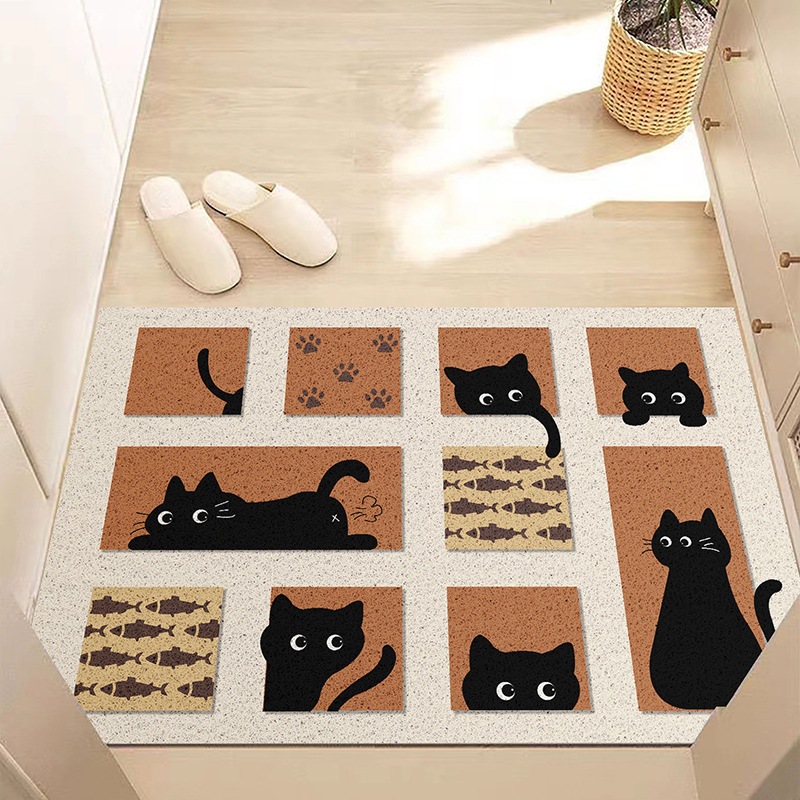 입구용 만화 고양이 디자인 미끄럼 방지 발매트, 현관용 진흙 제거 및 흙 제거용, 재단 가능, 실링크 발매트, 도매 가능스토어 가기