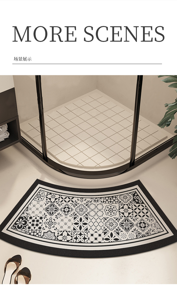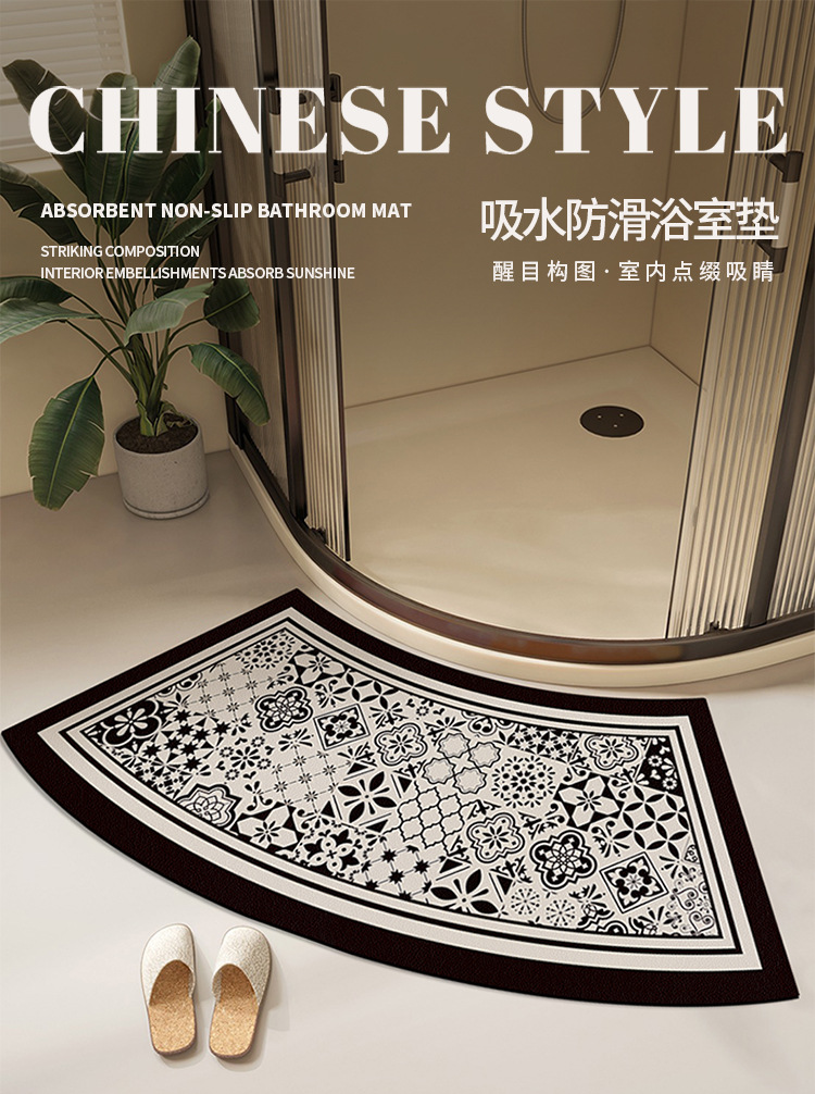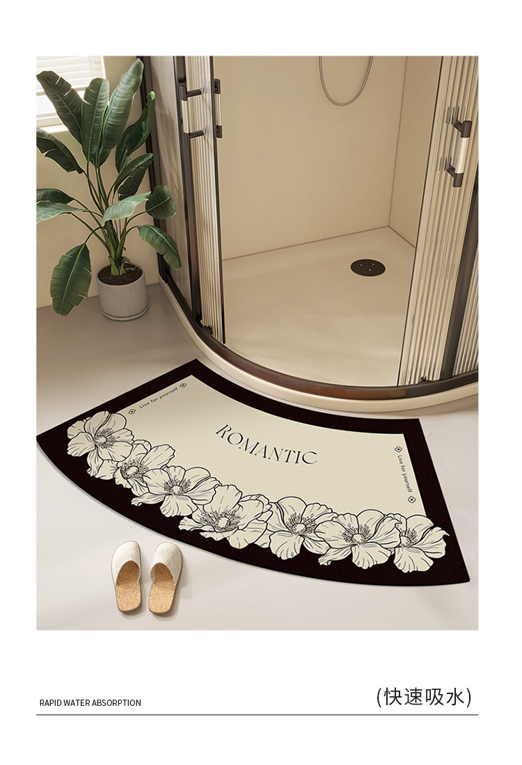 욕실 Diatom 진흙 곡선 카펫 욕실 미끄럼 방지 팬 모양의 발 매트 샤워 룸 문 강한 흡수성 빠른 건조 매트