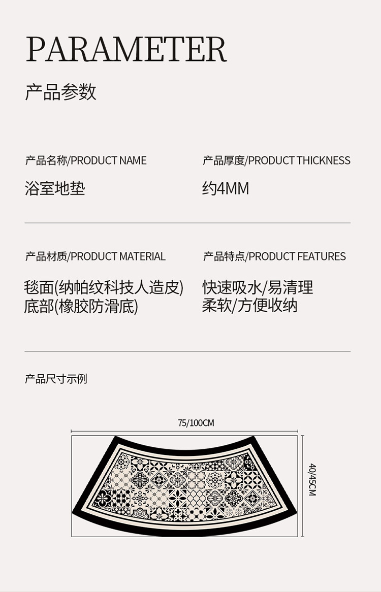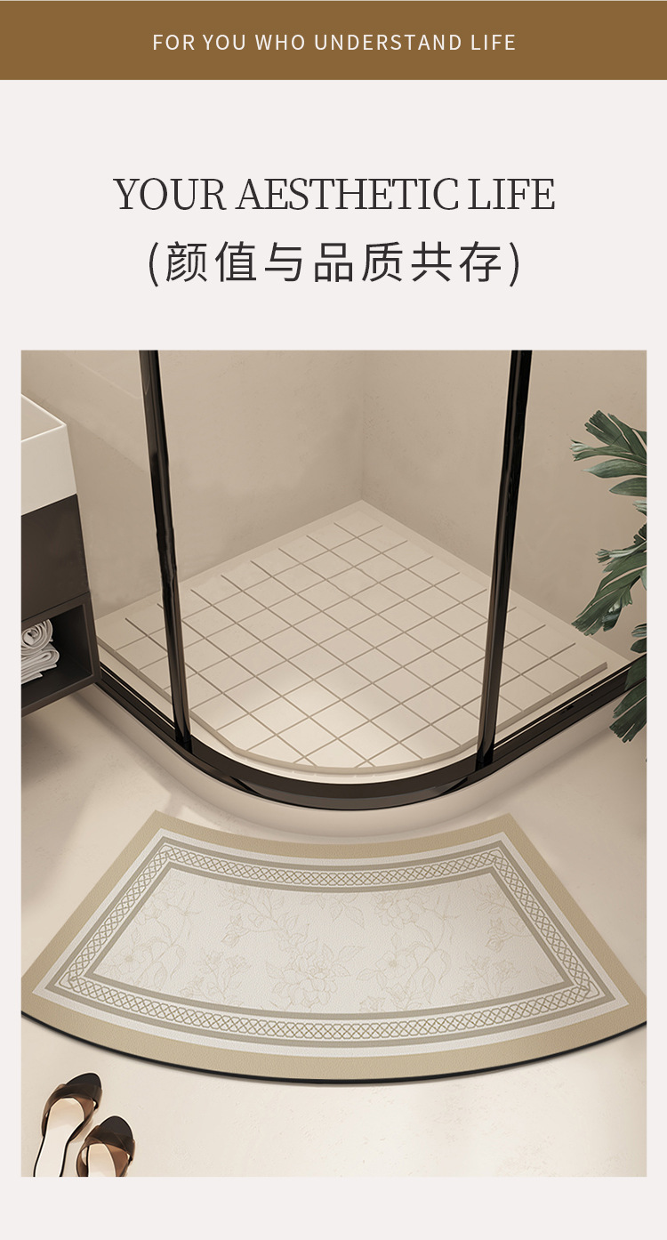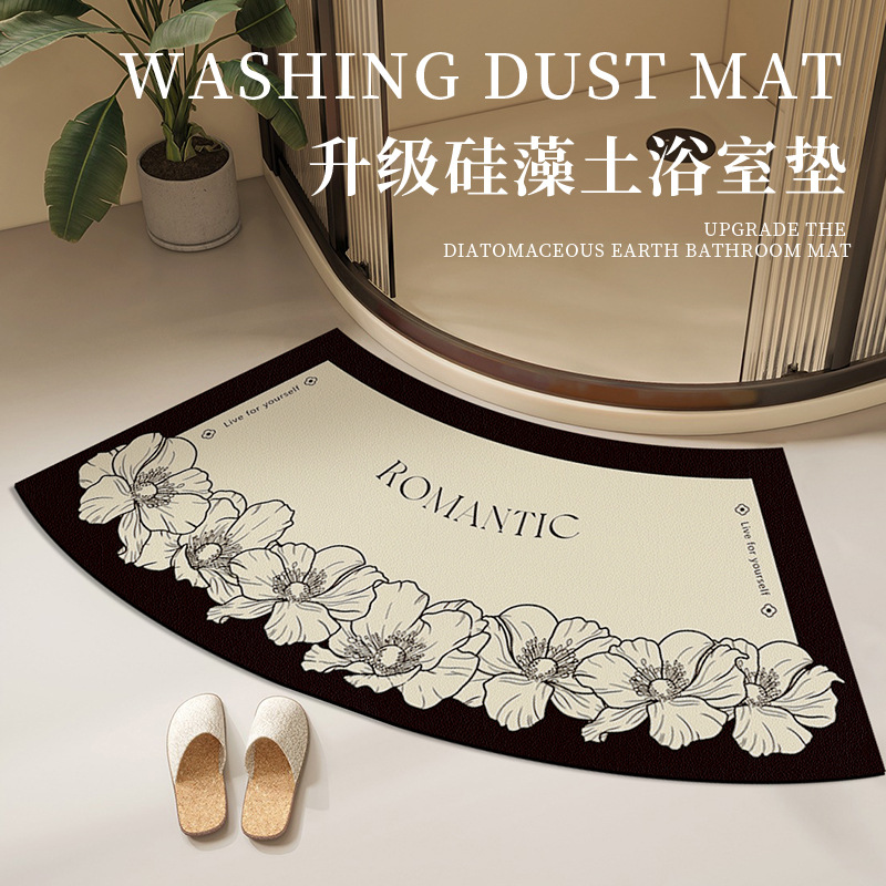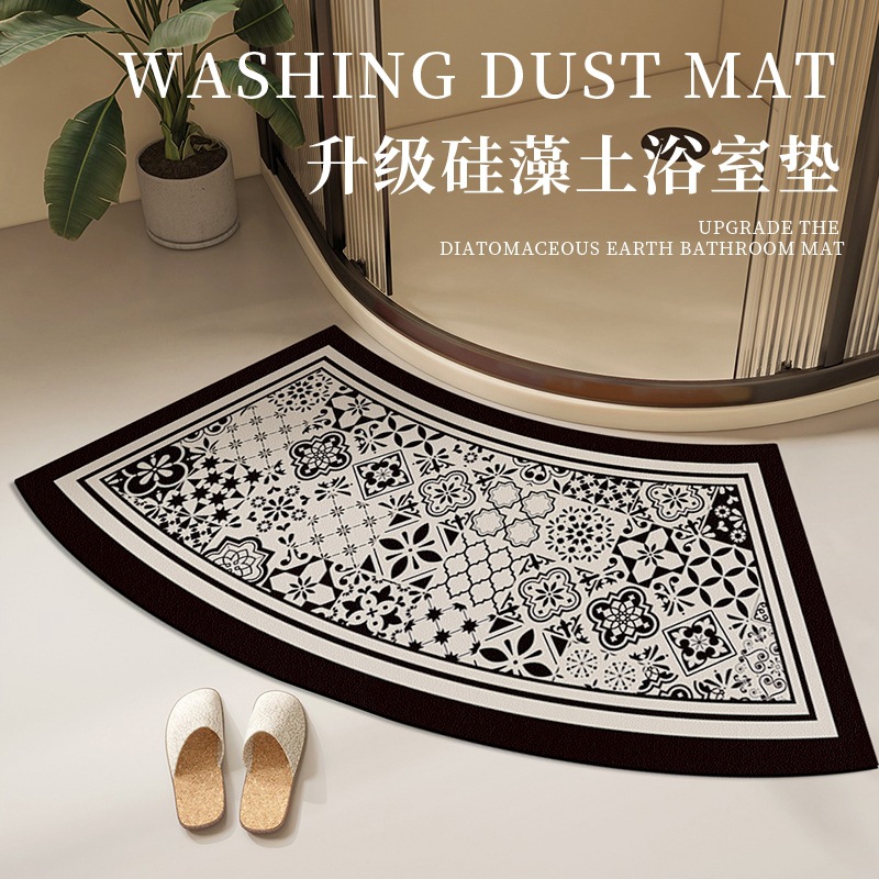 욕실 Diatom 진흙 곡선 카펫 욕실 미끄럼 방지 팬 모양의 발 매트 샤워 룸 문 강한 흡수성 빠른 건조 매트스토어 가기