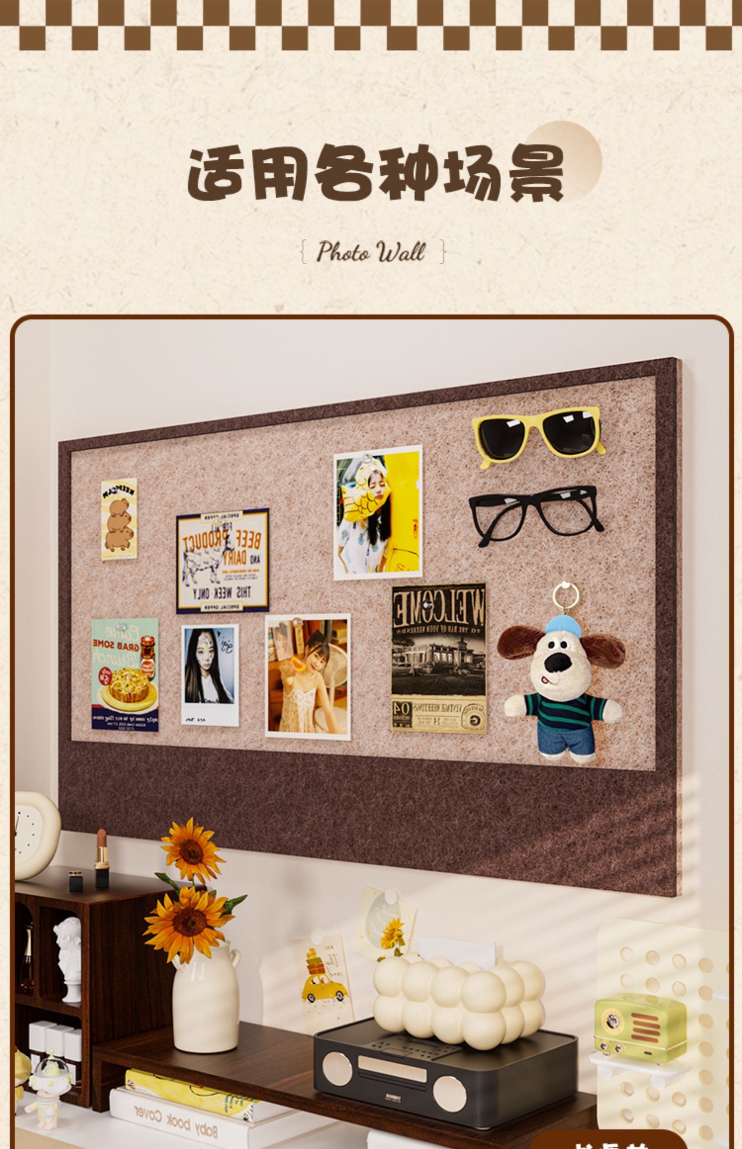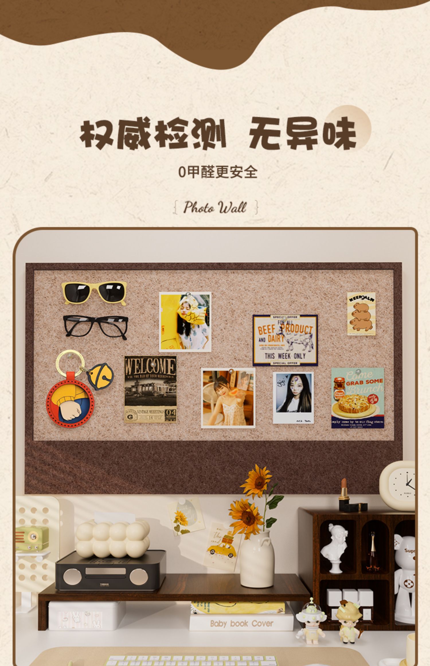 장기 펠트 보드 사진 벽 배경 보드 매달려 벽 접착제 사진 프레임 디스플레이 양모 펠트 버전 벽 스티커 코르크 보드 무료스토어 가기