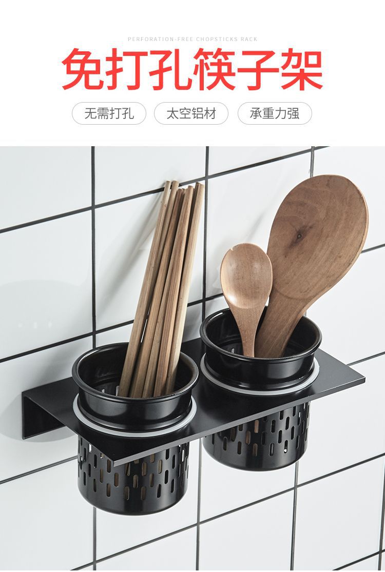 젓가락 케이지 가정용 펀치없는 주방 랙 벽걸이 공간 알루미늄 보관 랙 코너 랙 다기능 젓가락 바구니스토어 가기