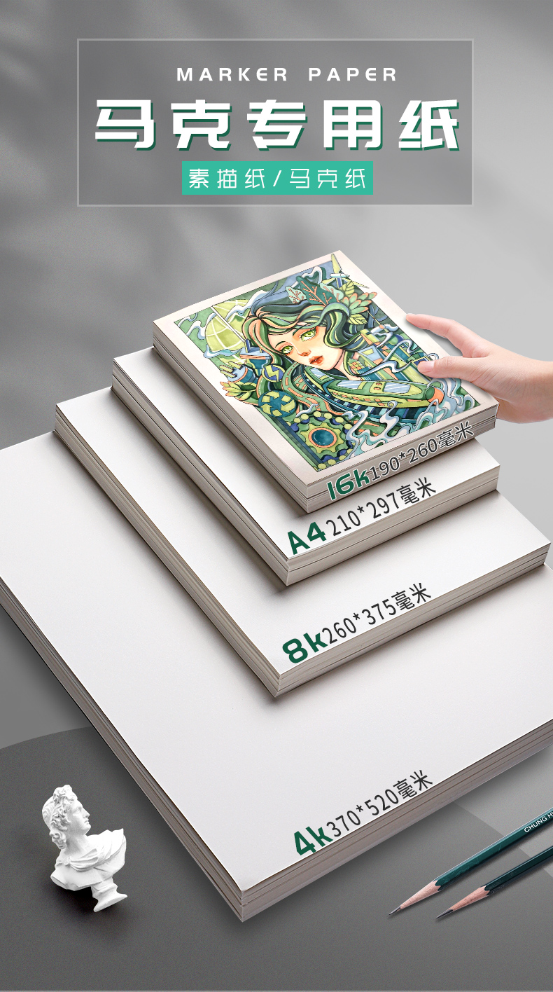 마크 종이 스케치 종이 드로잉 종이 8k 두껍게 불투명 a3 마크 펜 아트 특수 종이 a4 스케치 용지 16 오픈 4k