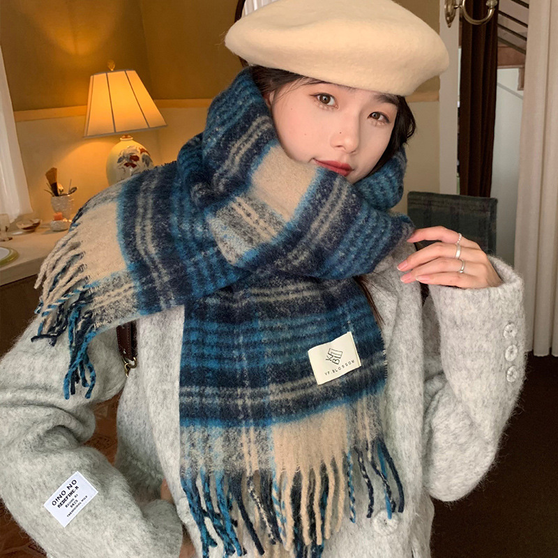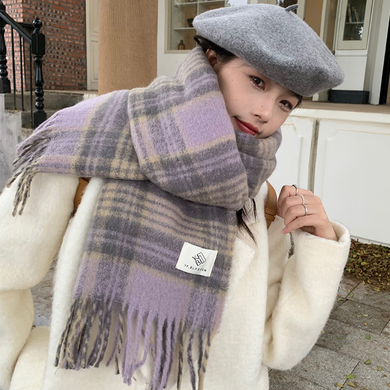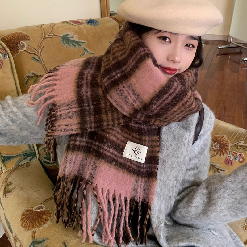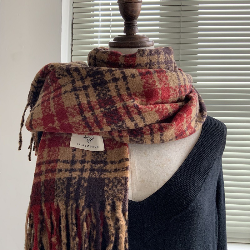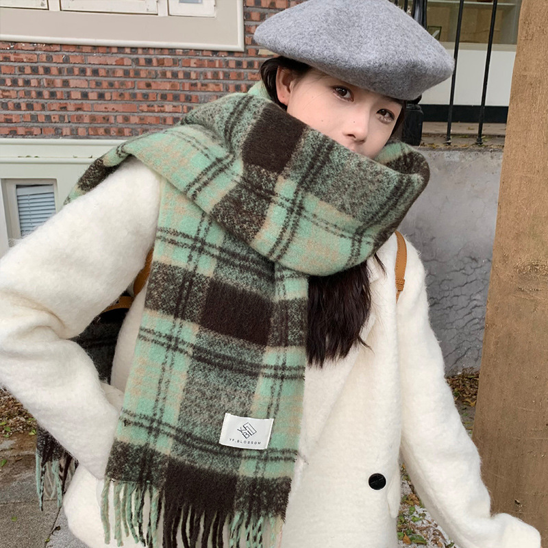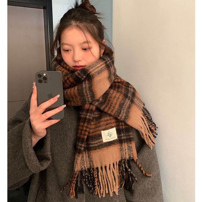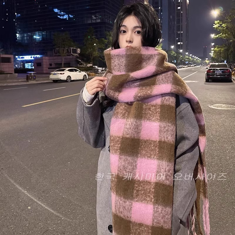 새로운 가을과 겨울 Houndstooth 스카프 여자 한국식 두꺼운 따뜻한 올 매치 격자 무늬 술 스카프스토어 가기