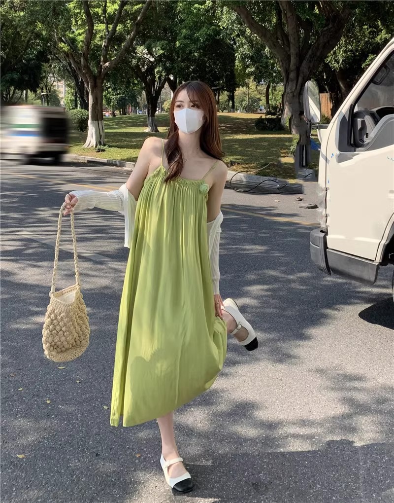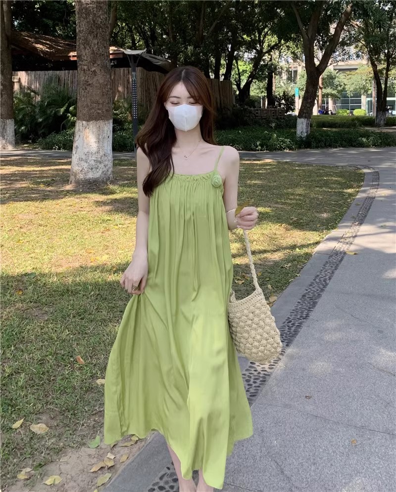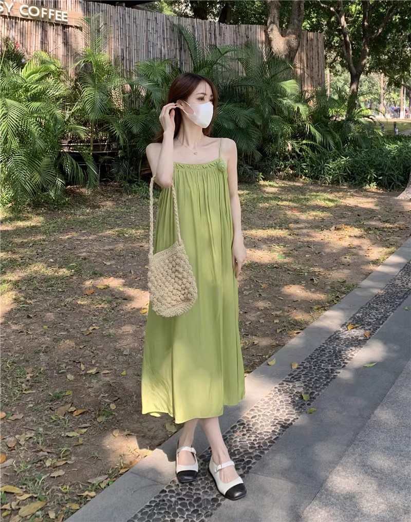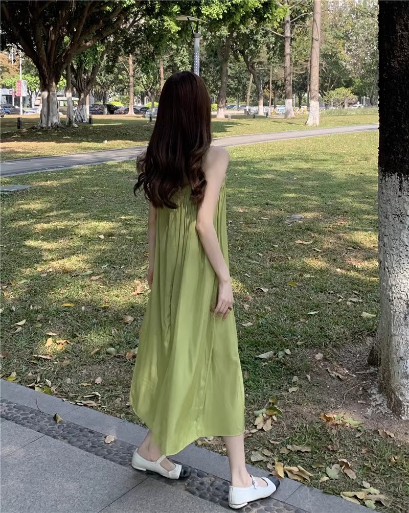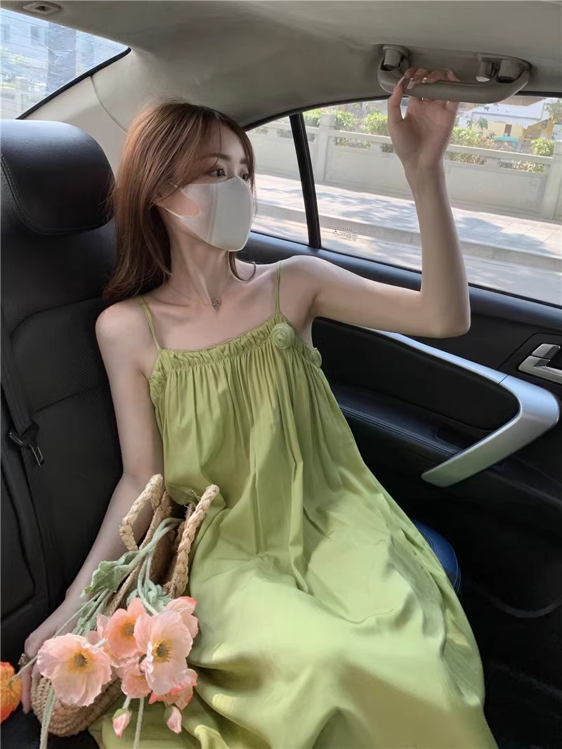 Saltable 달콤한 슈퍼 페어리 그린 슬링 원피스 여성 여름 부드러운 우아한 해변 해변 원피스