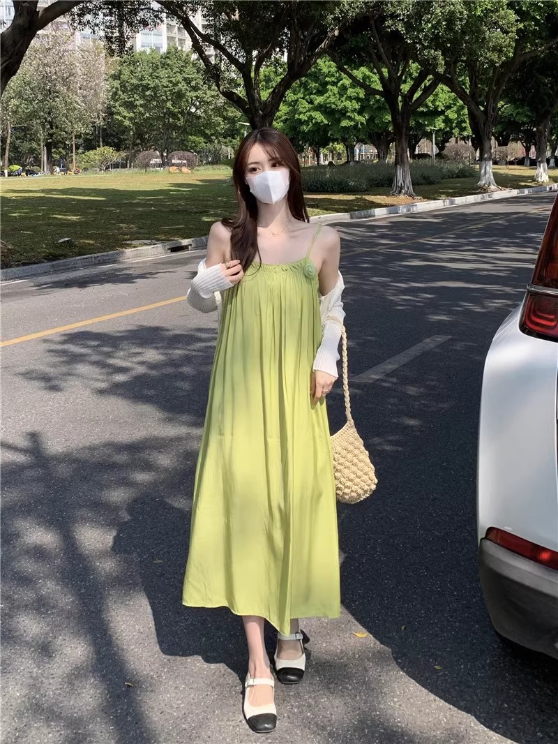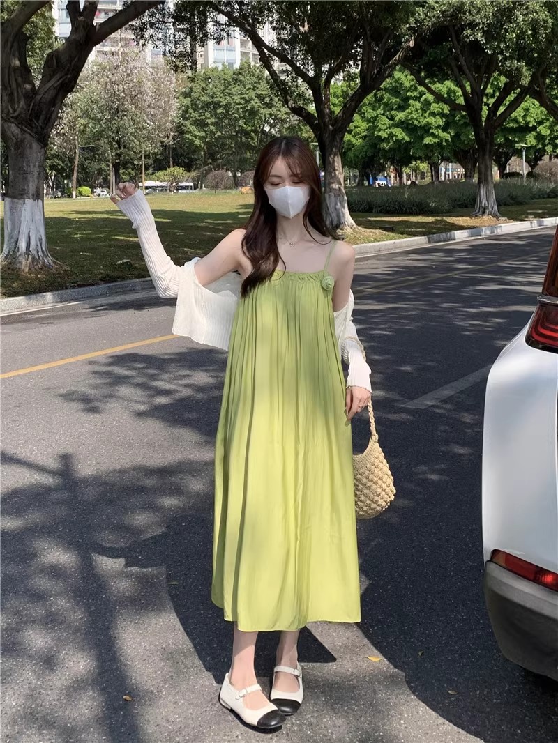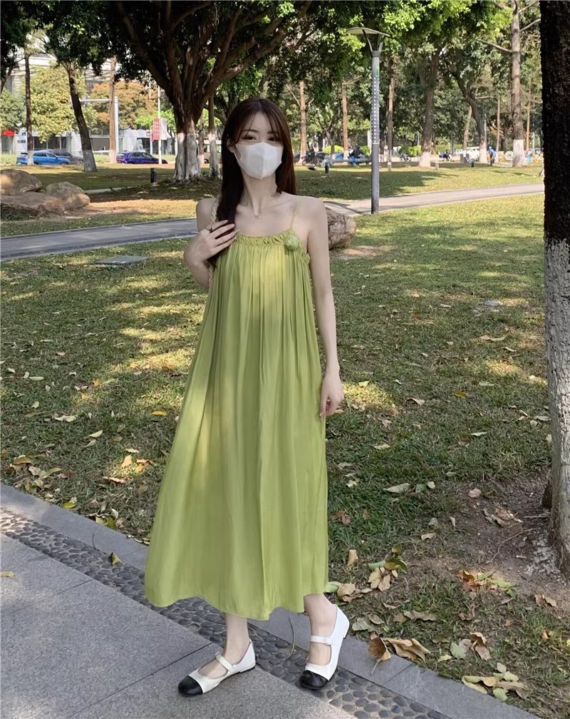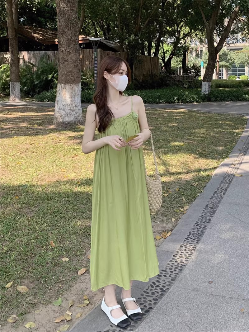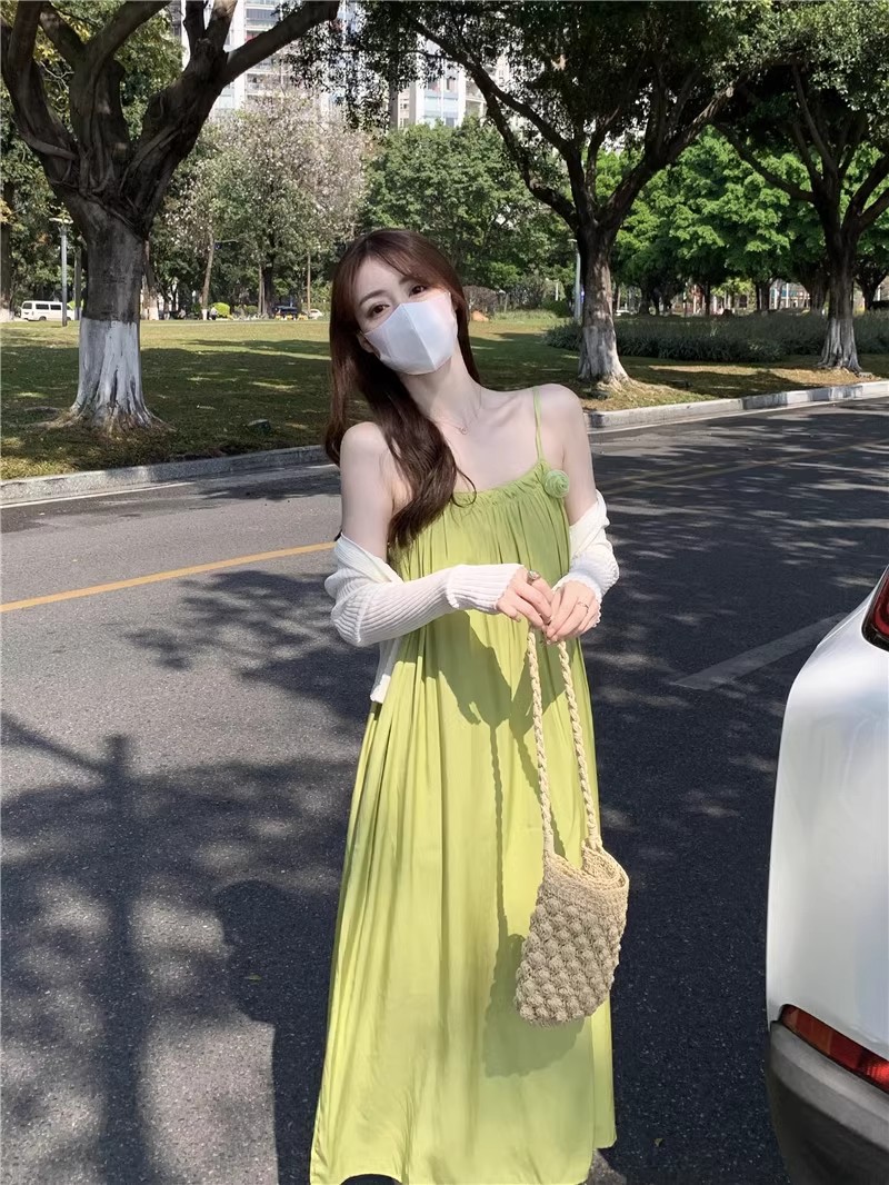 Saltable 달콤한 슈퍼 페어리 그린 슬링 원피스 여성 여름 부드러운 우아한 해변 해변 원피스