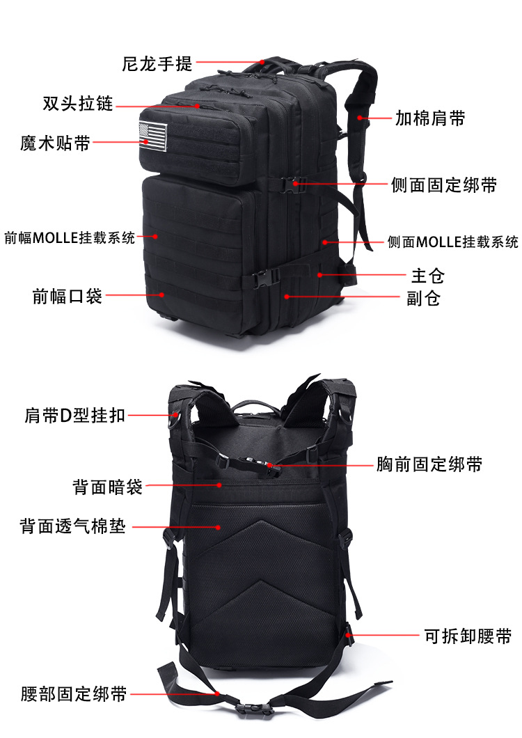야외 스포츠 45L 대용량 배낭 야외 캠핑 하이킹 방수 다기능 전술 배낭