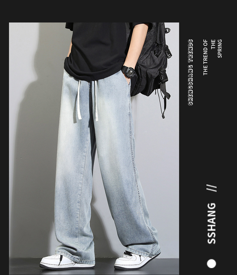 NASA Tencel 청바지 남성용 여름 얇은 2024 새로운 느슨한 남성용 캐주얼 바지스토어 가기