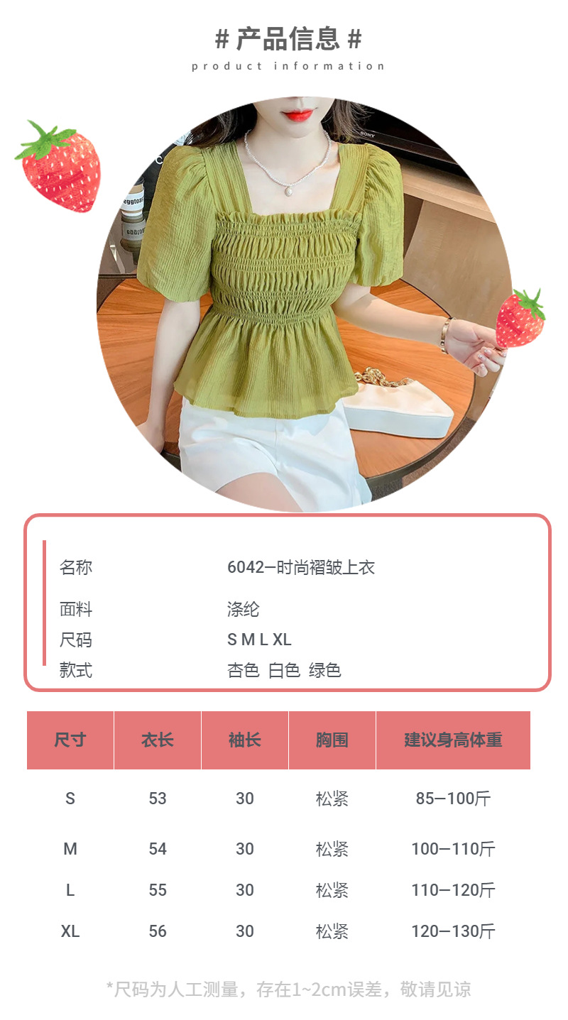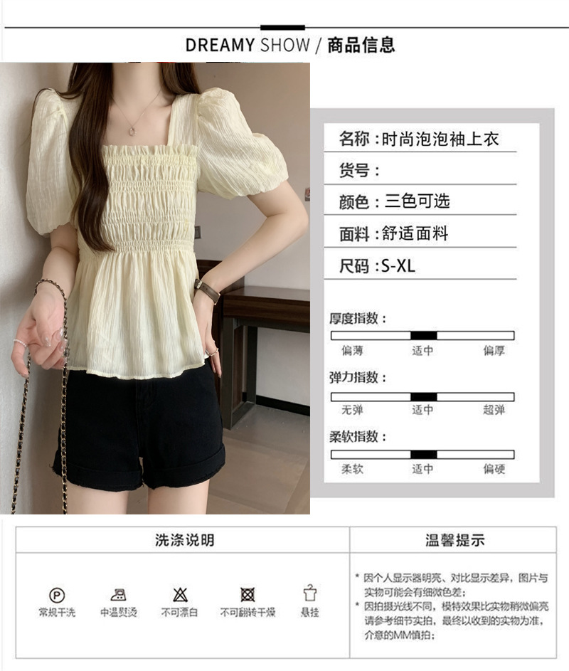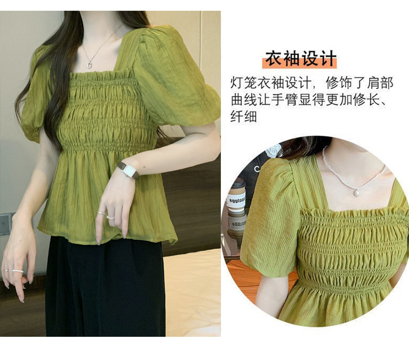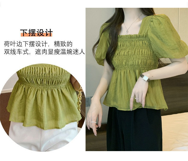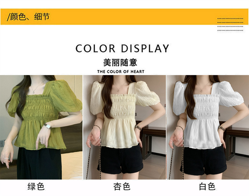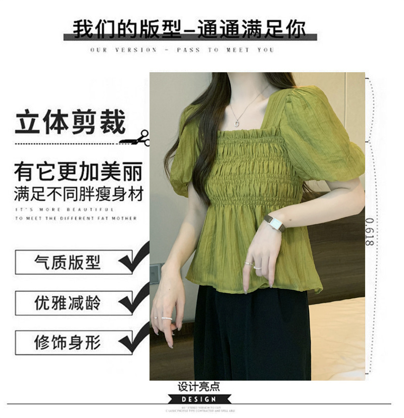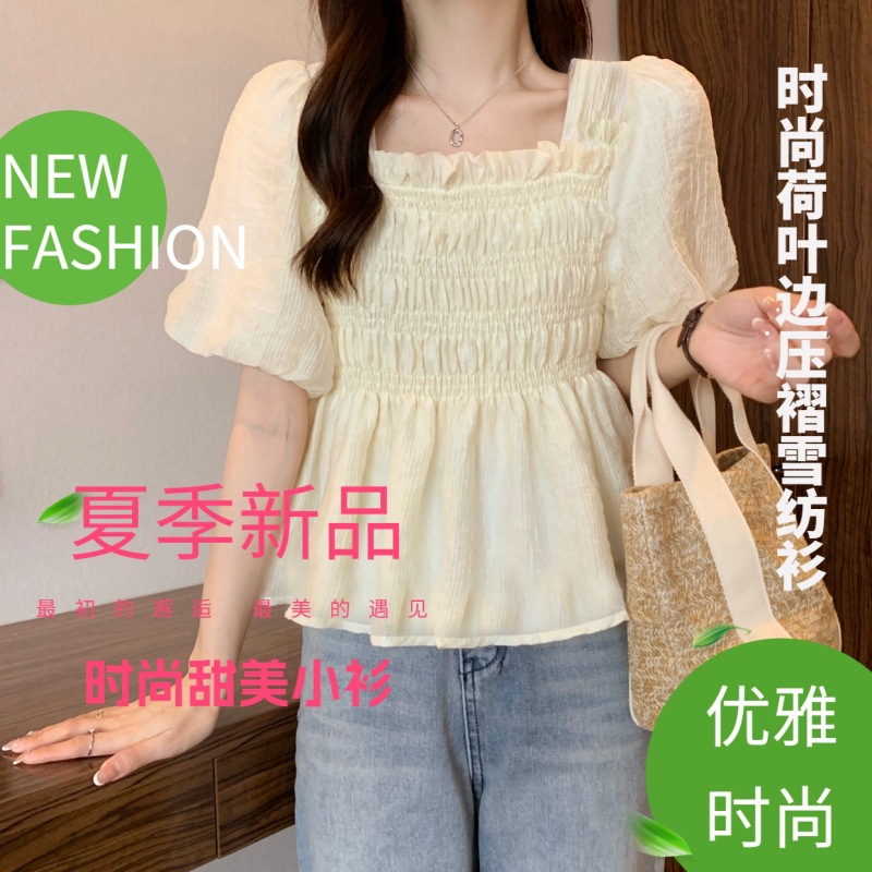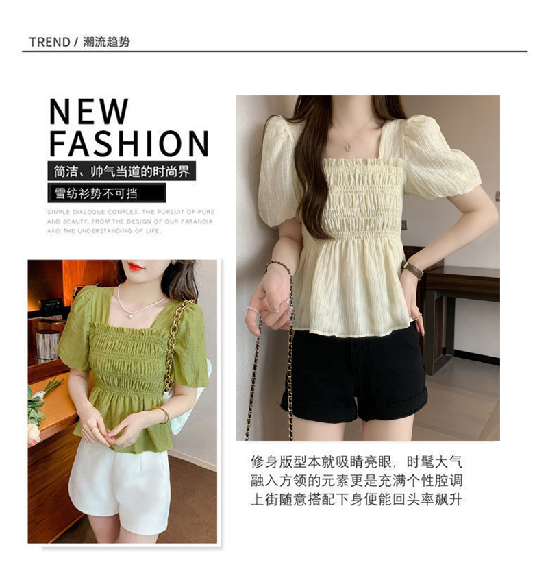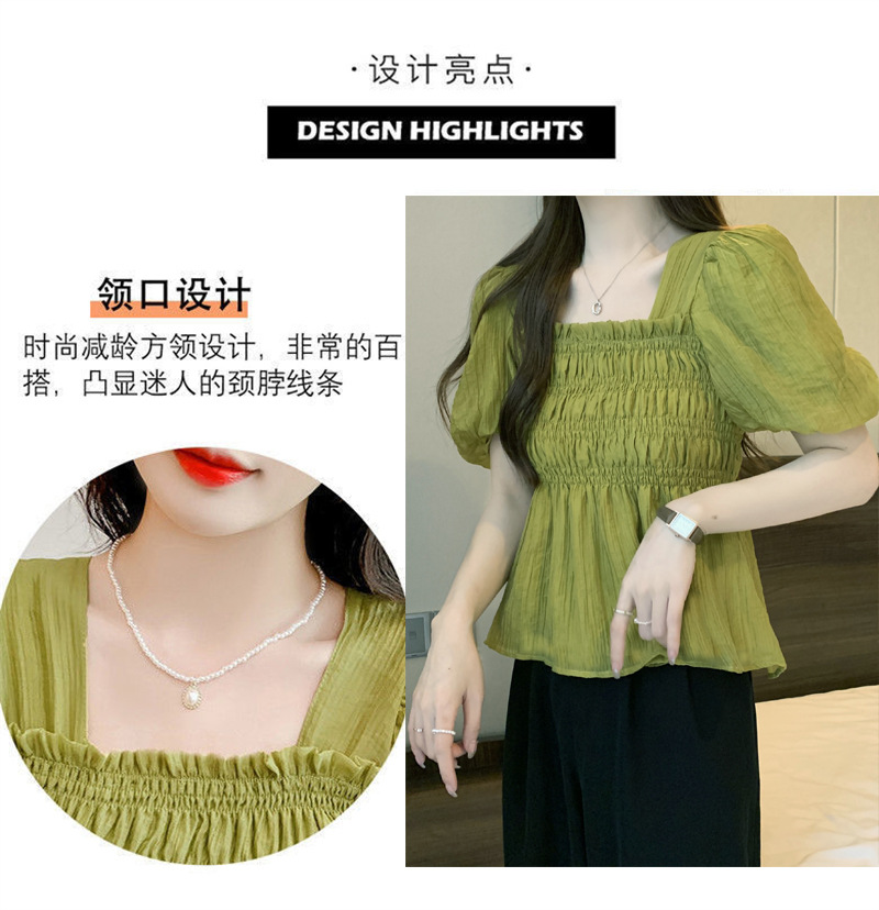 프랑스 스타일 스퀘어 칼라 반팔 쉬폰 셔츠 여성의 여름 새로운 디자인 센스 니쉬 쇼트 탑 벨리 커버 셔츠스토어 가기