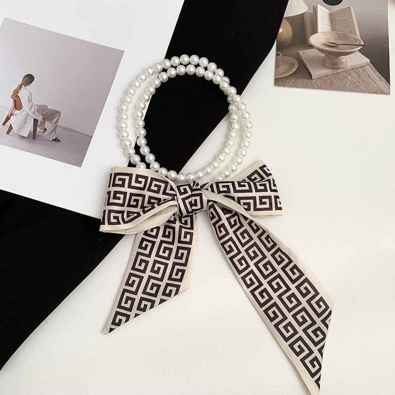 여성용 스카프 2025 여름 프렌치 레트로 스타일 진주 목걸이 체인 실크 스카프 목걸이 다용도 쇄골 장식 리본