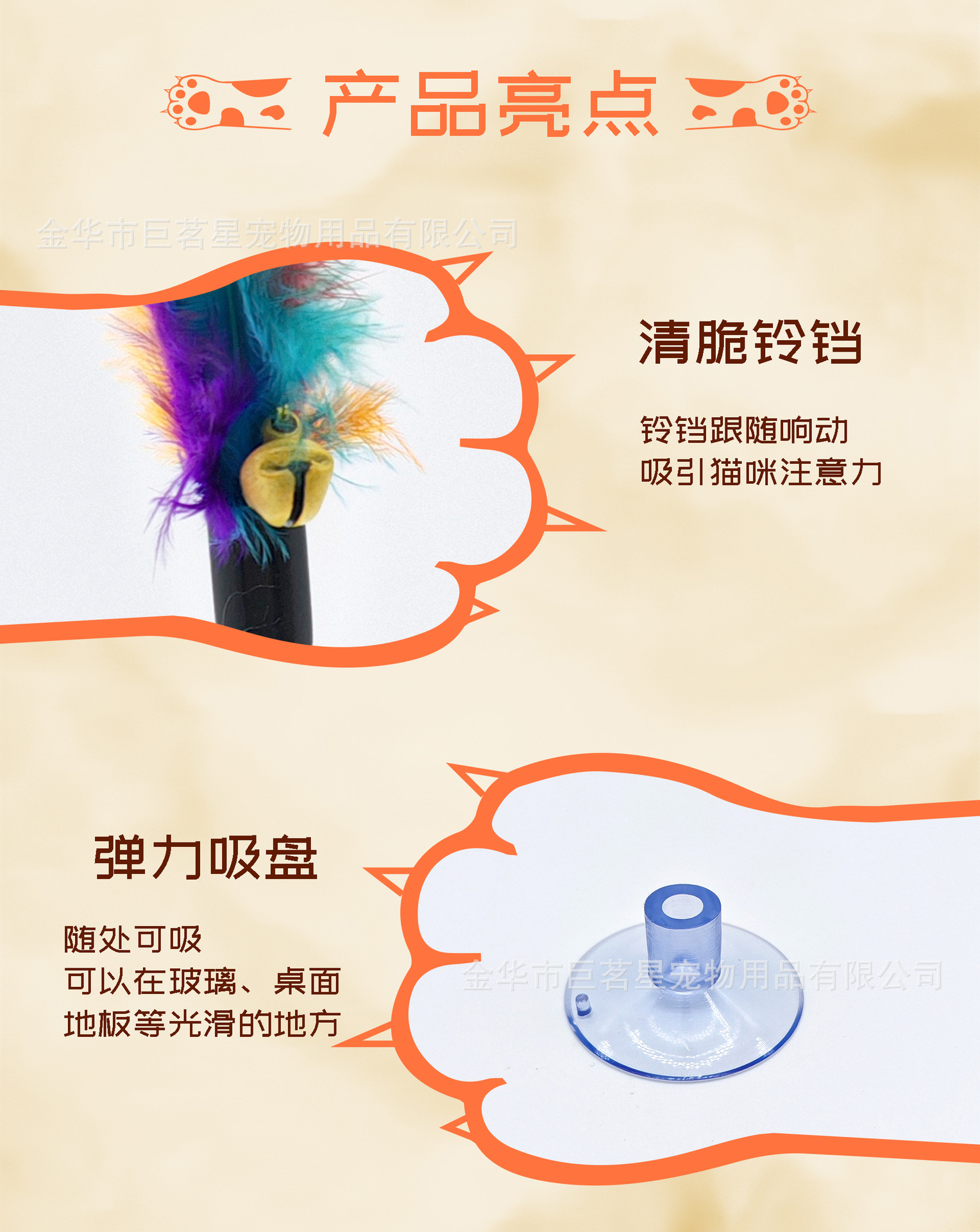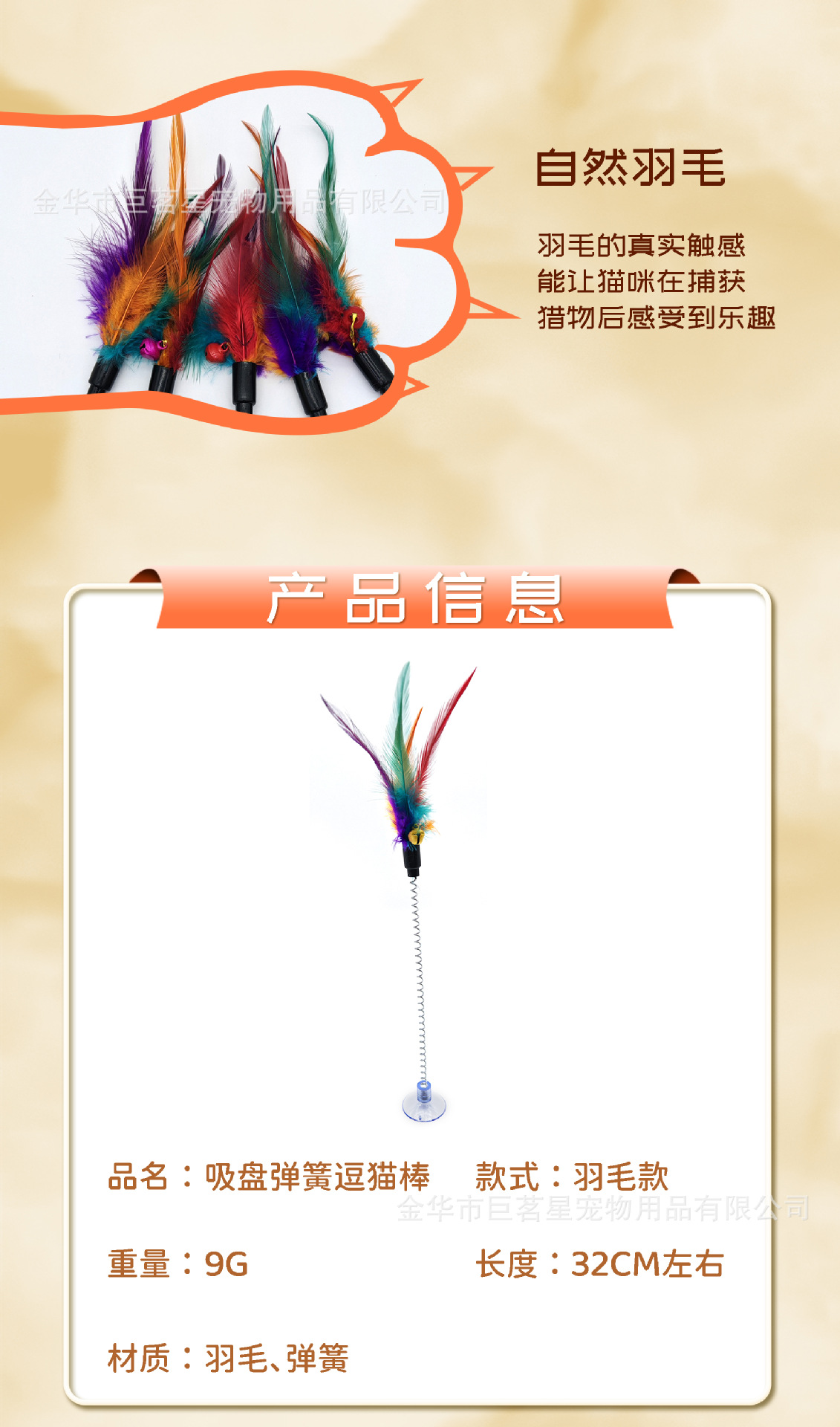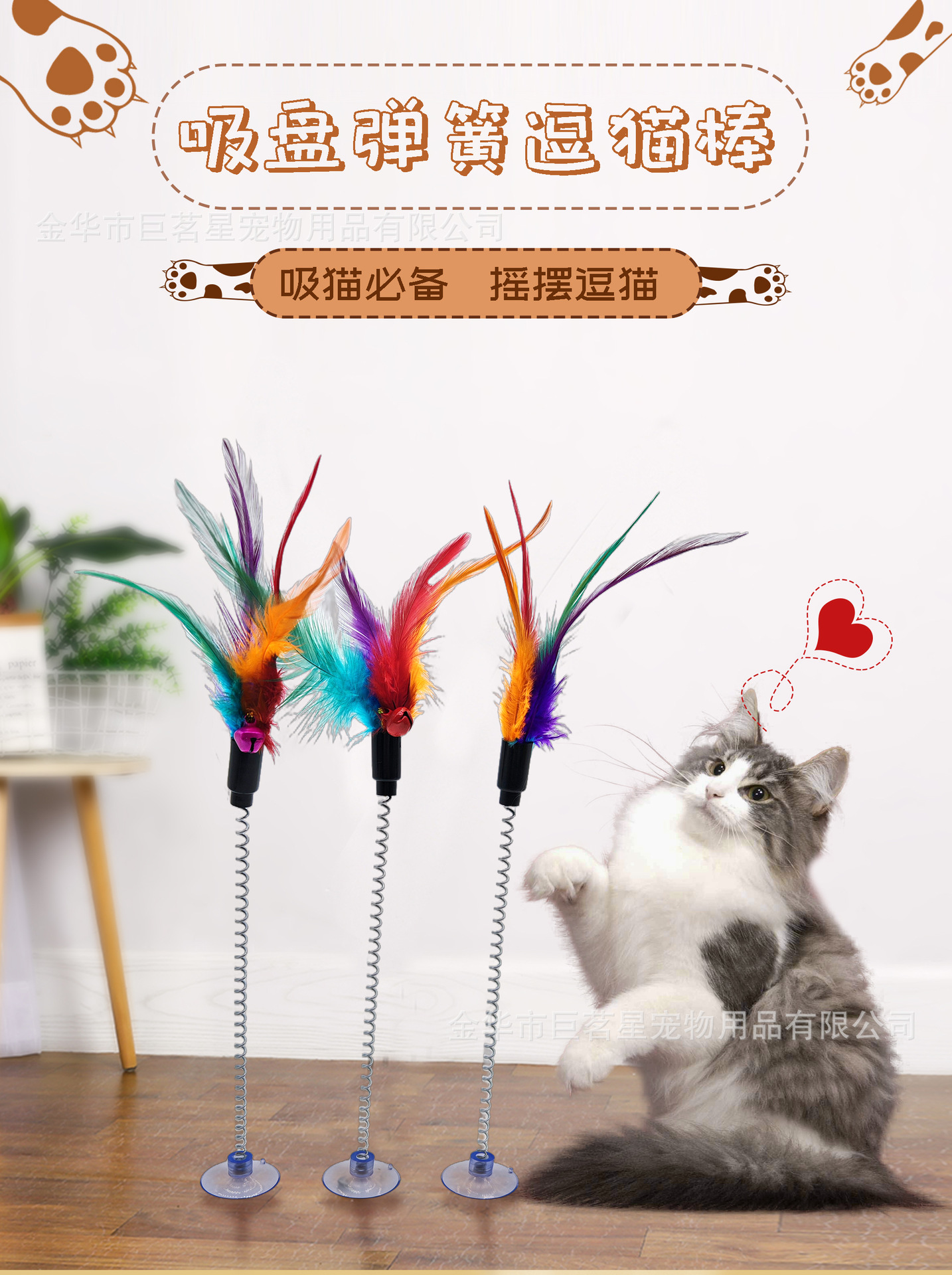 • 흡착컵 스프링 깃털 고양이 놀리는 막대기 (별도의 OPP 가방에 포장)