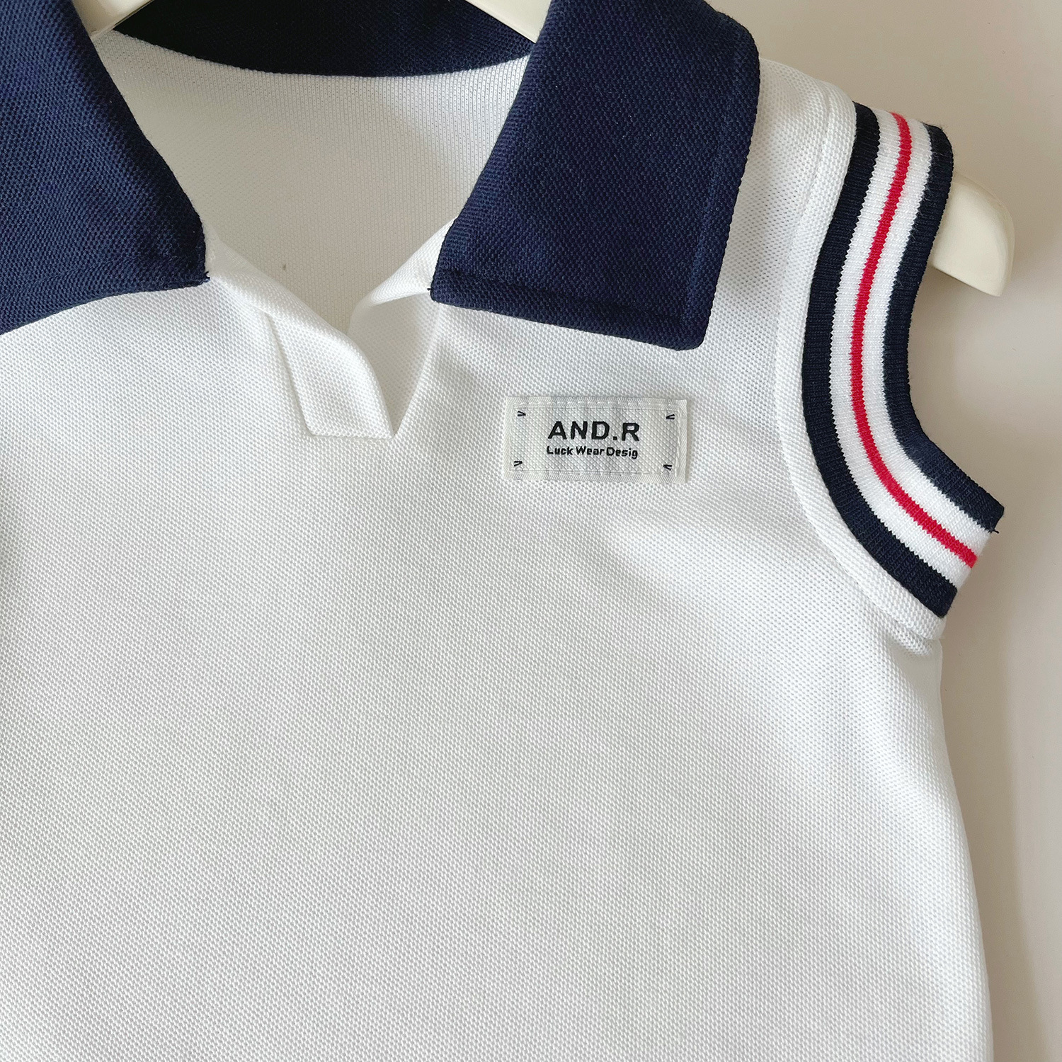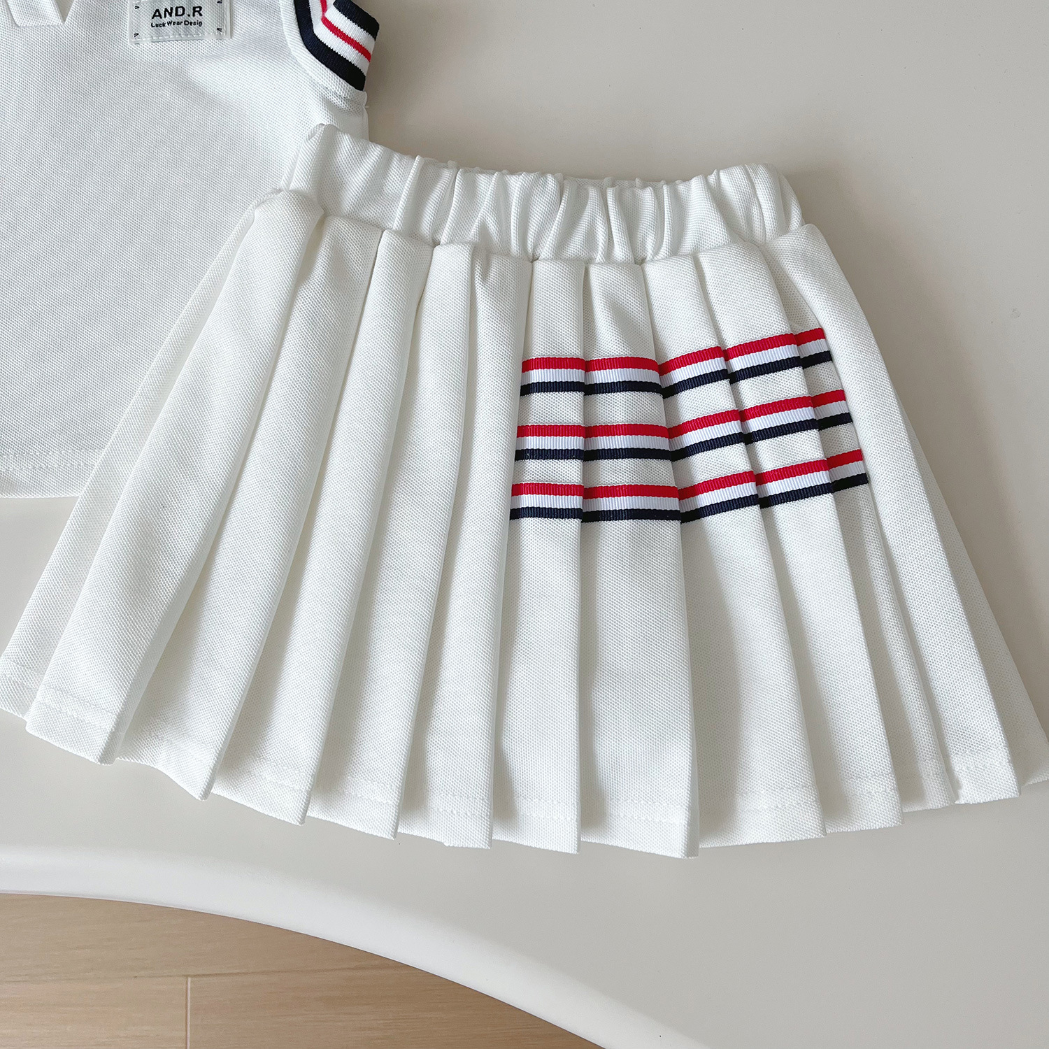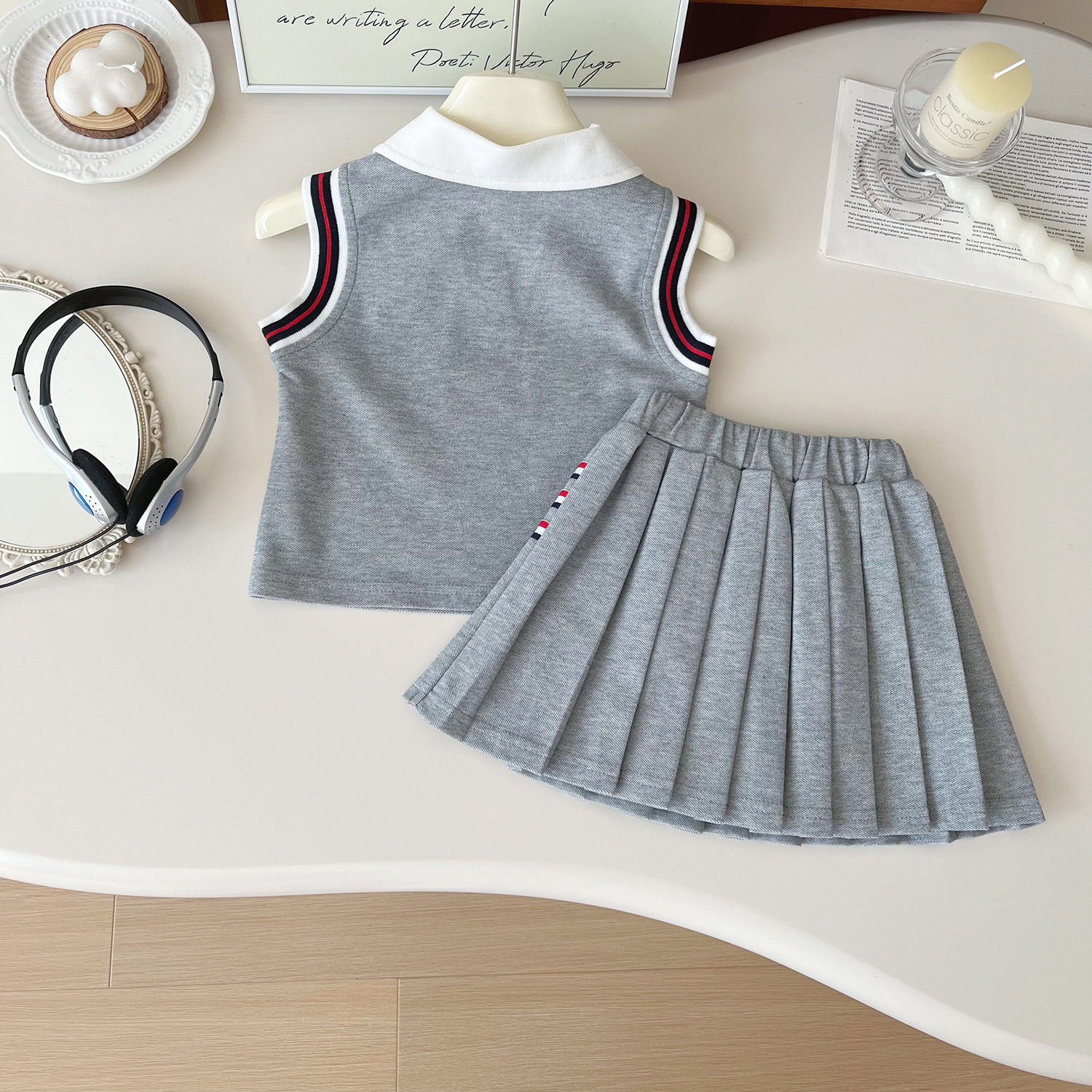 2024 년 여름 새로운 한국 스타일 소녀의 폴로 셔츠 짧은 치마 세트 소녀의 귀여운 민소매 투피스 24381