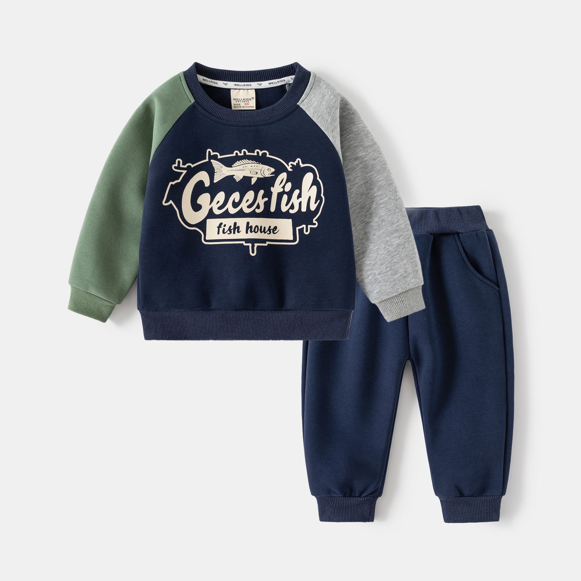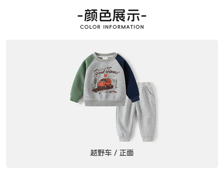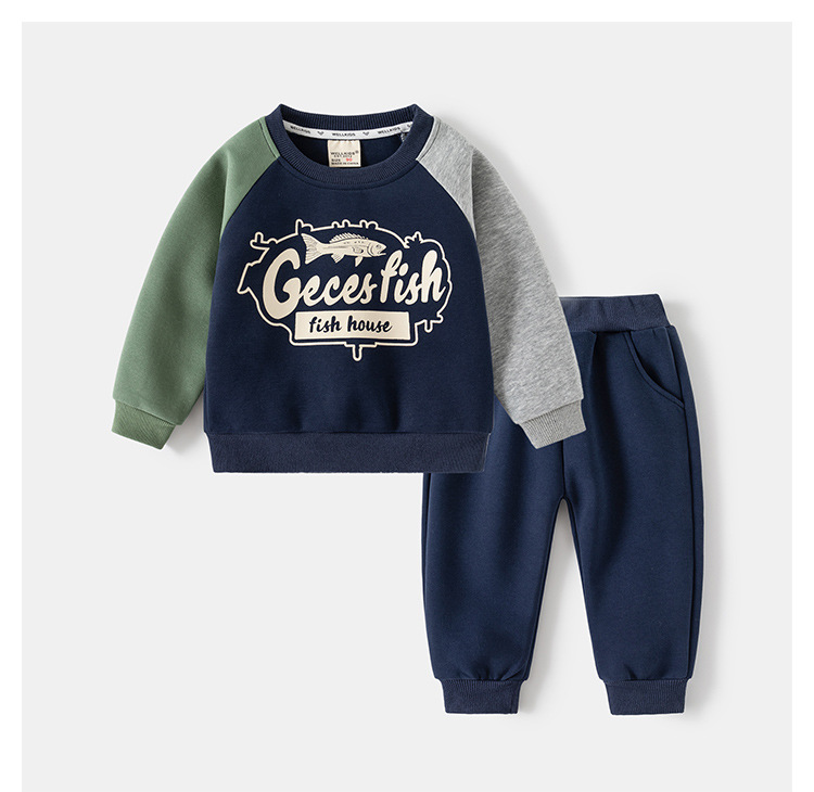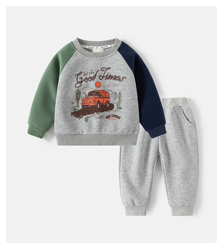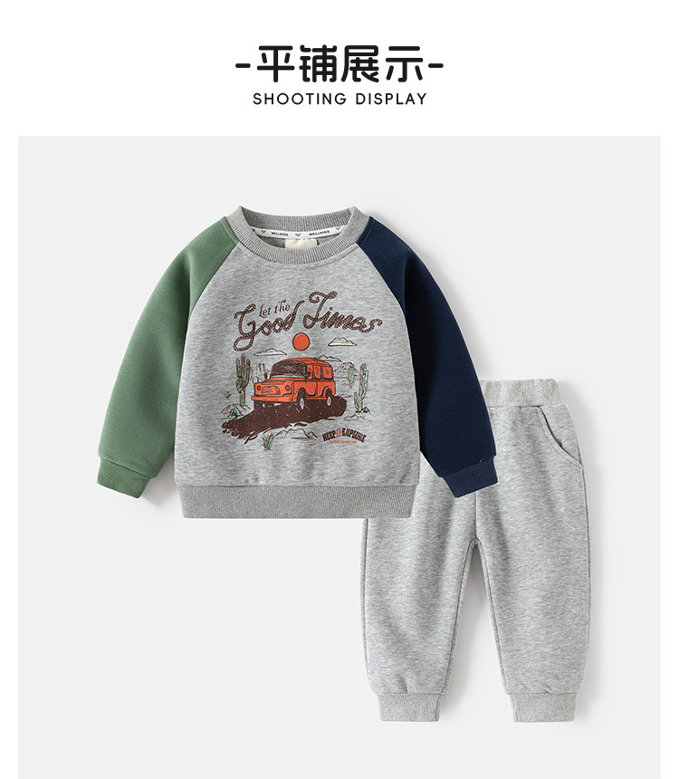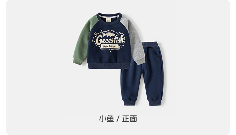 어린이 의류 2024 새로운 어린이 세트 소년 스웨터 스포츠 바지 아기 만화 풀오버 투피스 세트 머리카락스토어 가기