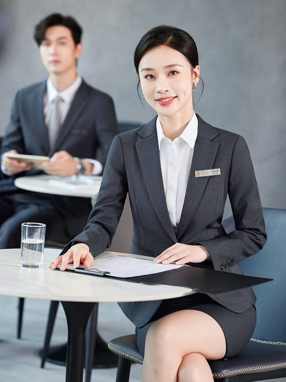 같은 세트 대나무 섬유 사업을 가진 의류 남녀 세트 주름 방지 다림질 작업복 다크 그레이 세트 판매스토어 가기