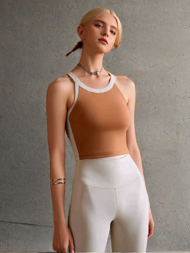 국경 간 새로운 색상 매칭 스포츠 속옷 중간 강도 스포츠 피트니스 민소매 대조 가슴 큰 가슴 요가 조끼 탑