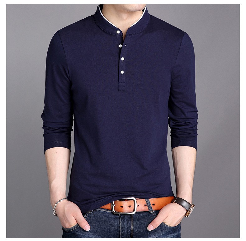 봄과 여름 남자의 새로운 긴팔 티셔츠 솔리드 컬러 스탠드 칼라 니트 셔츠 남성용 올 매치 풀오버 셔츠 재킷스토어 가기