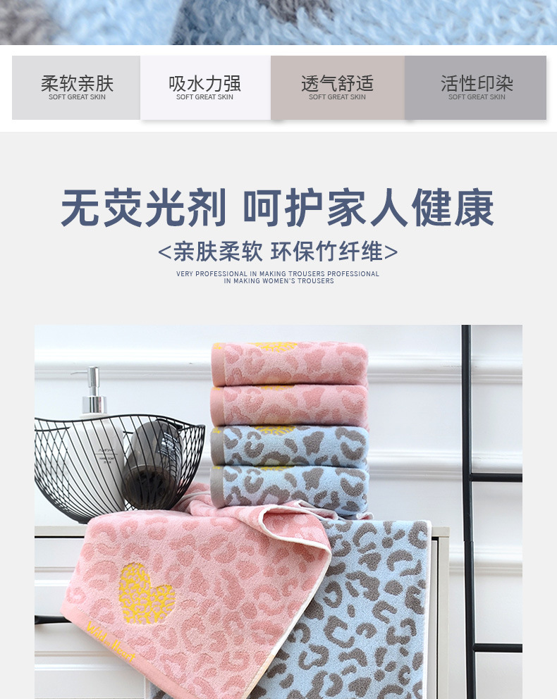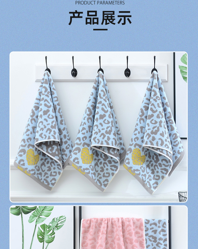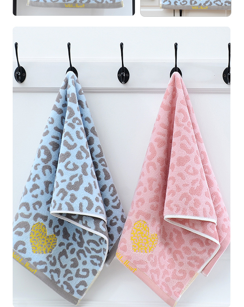 새로운 가정용 얼굴 수건 부드럽고 편안한 레오파드 자카드 통기성 얼굴 수건 학생 수건