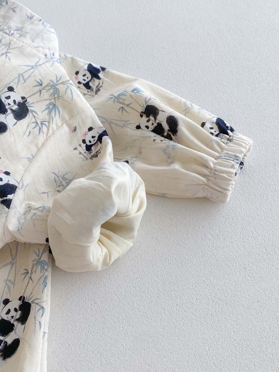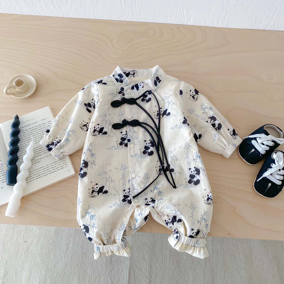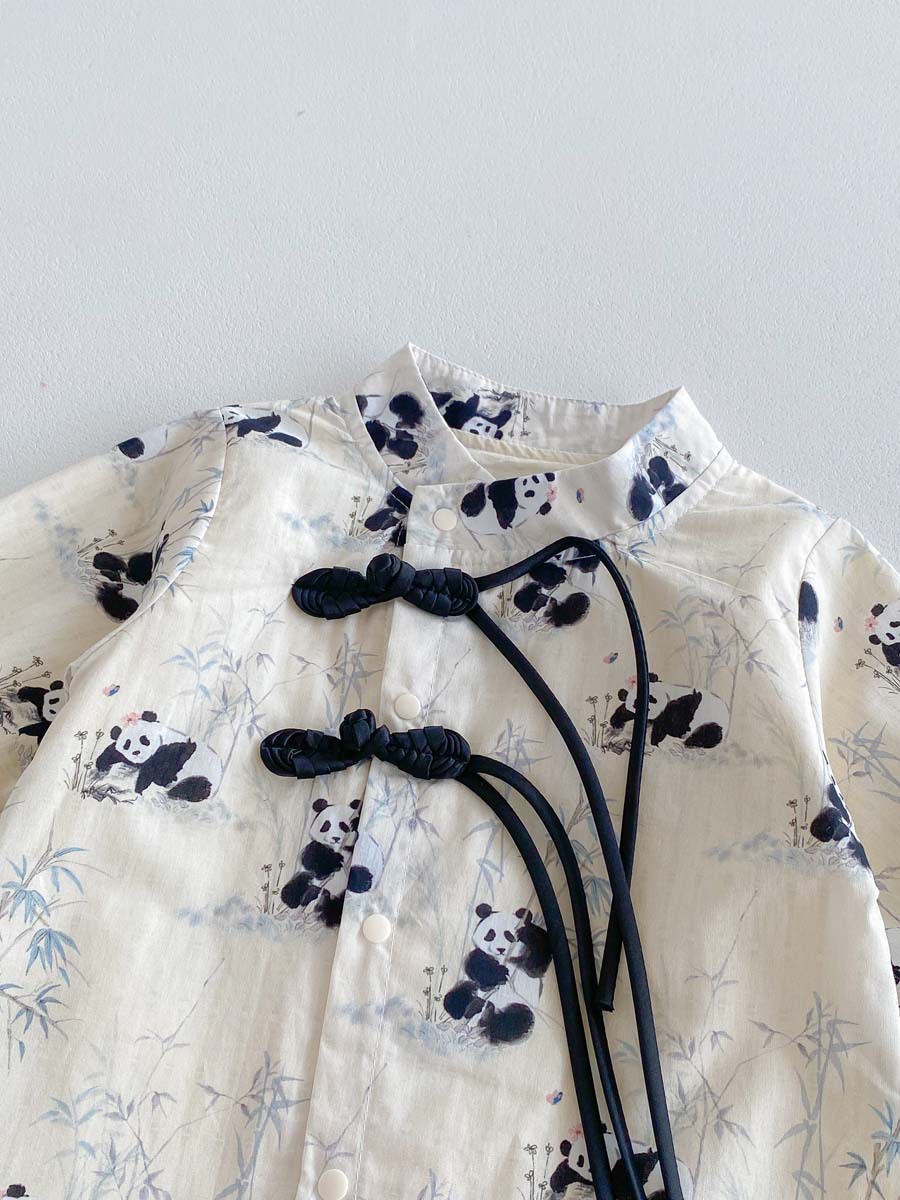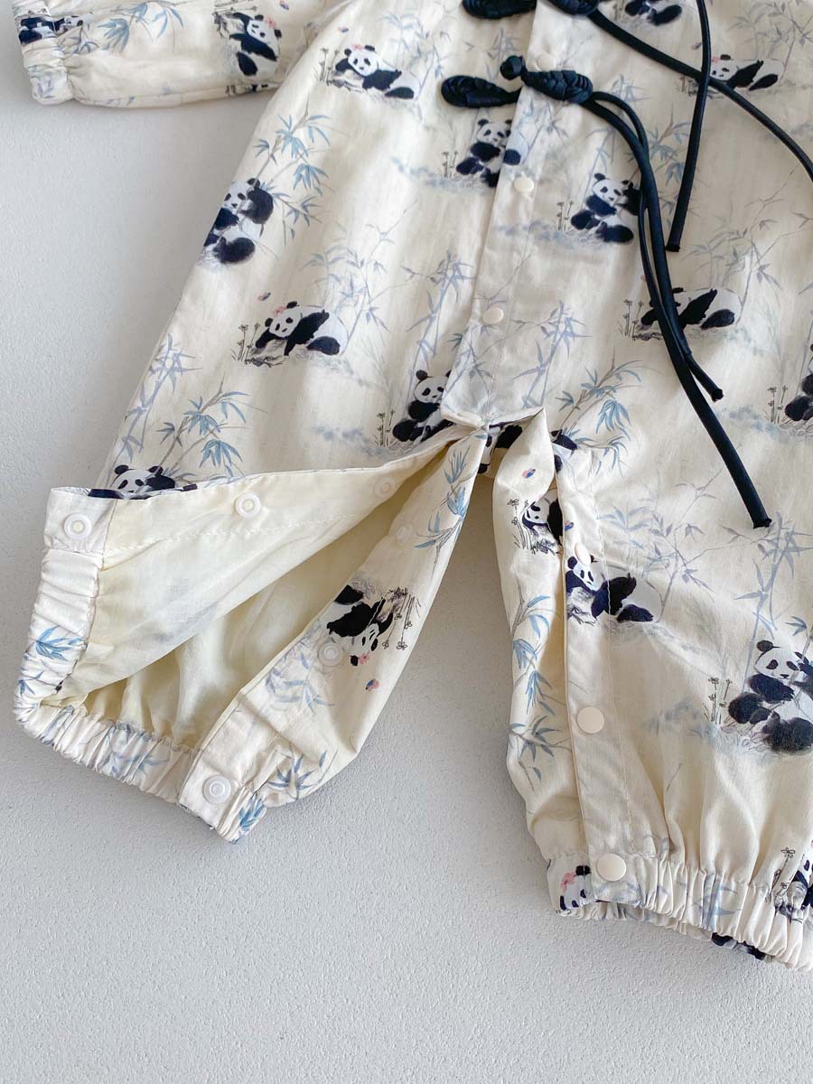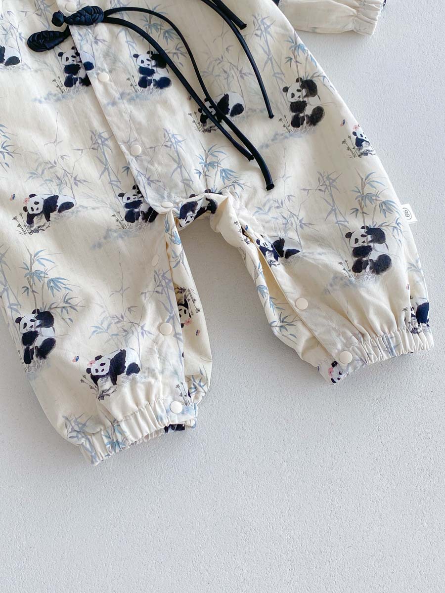 아기용 신형 중국식 단추 팬더 긴팔 점프수트 2025 가을 아기 백일 기념 만월복 돌복스토어 가기