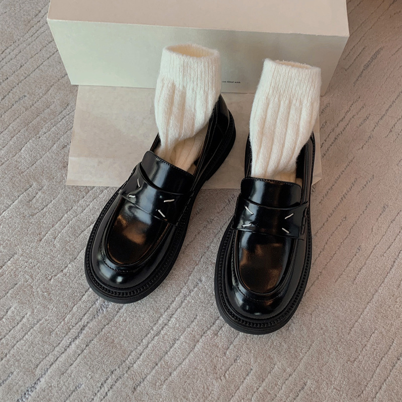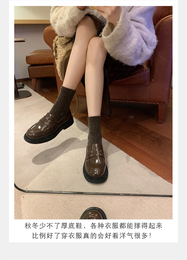 가죽 로퍼 라운드 발가락 작은 가죽 신발 포도 엄마 신발 여성 가을 영국 새로운 두꺼운 솔로 레트로 여성의 가을 두꺼운 단독스토어 가기