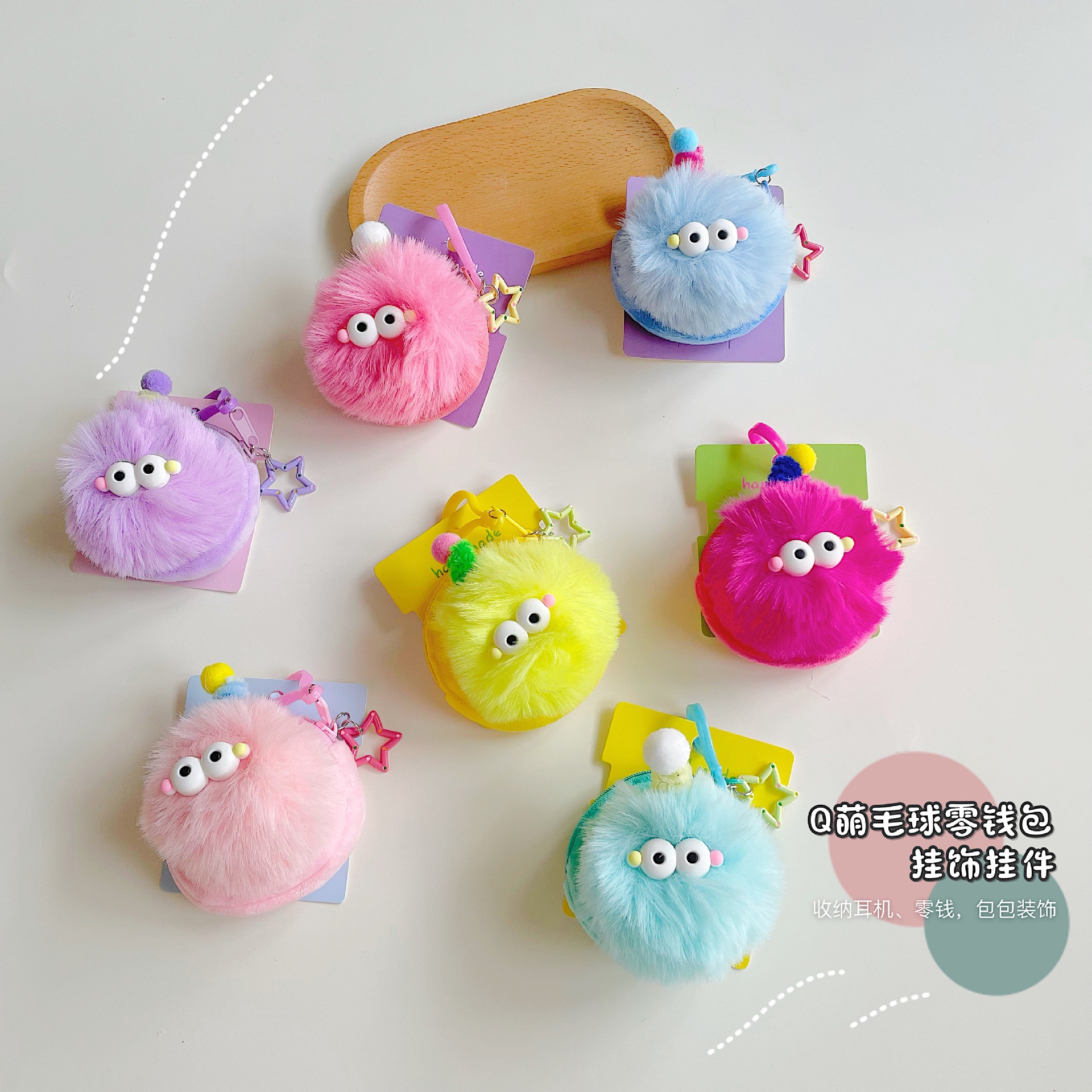 국경 간 새로운 다채로운 창조적 인 귀여운 모피 공 동전 지갑 키 케이스 헤드셋 저장 가방에 봉제 펜던트 조수스토어 가기