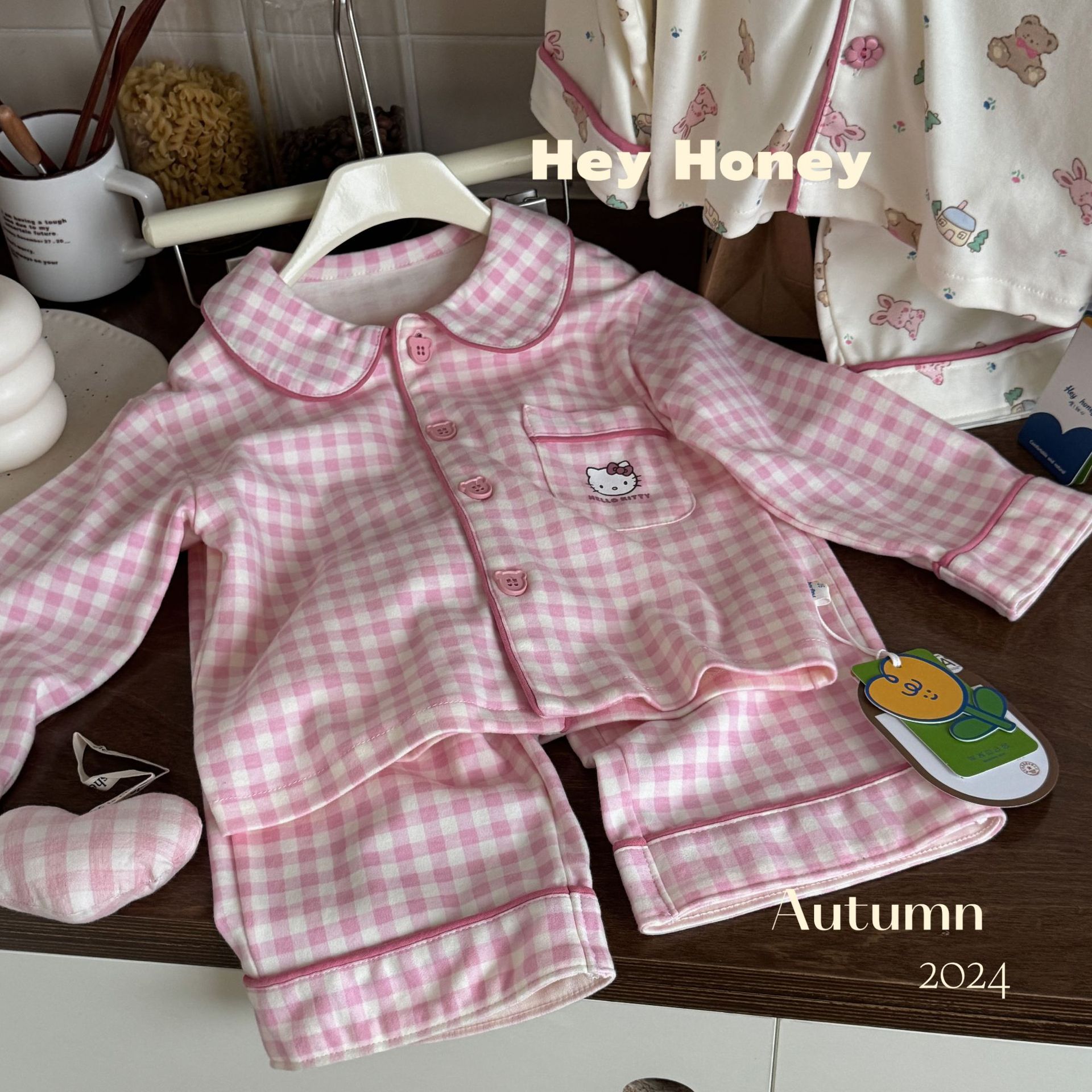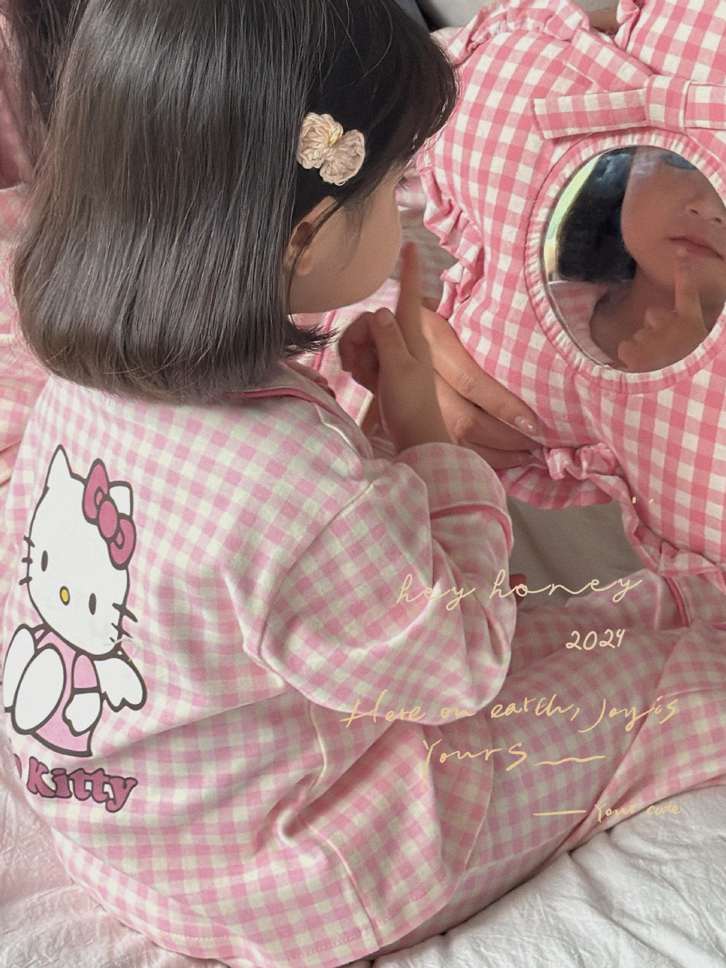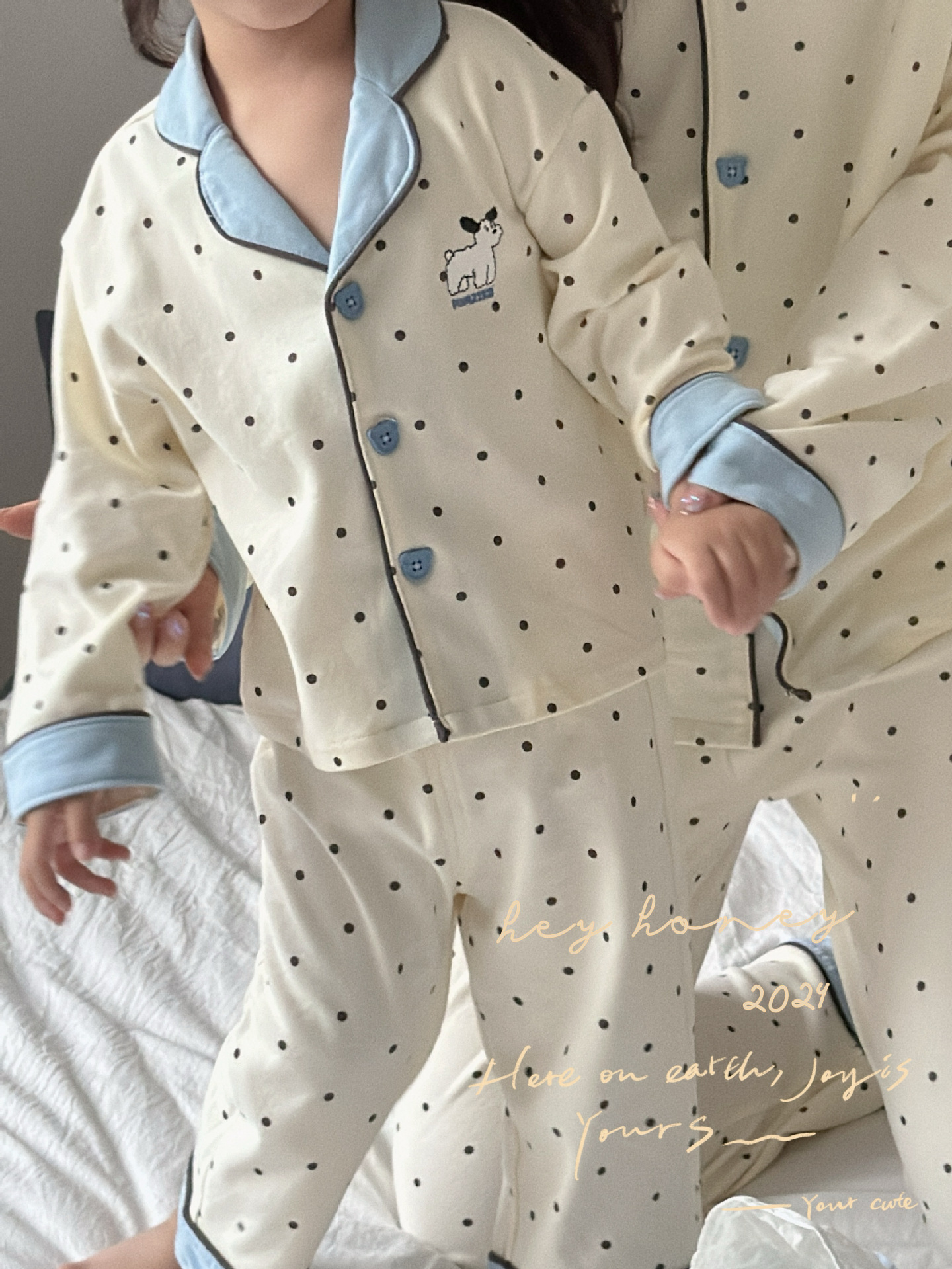 봄과 가을에 어울리는 크고 작은 롤 귀여운 프린트 한국식 단일 행 오픈 버튼 투피스 부모-자식 잠옷 세트 홈웨어스토어 가기