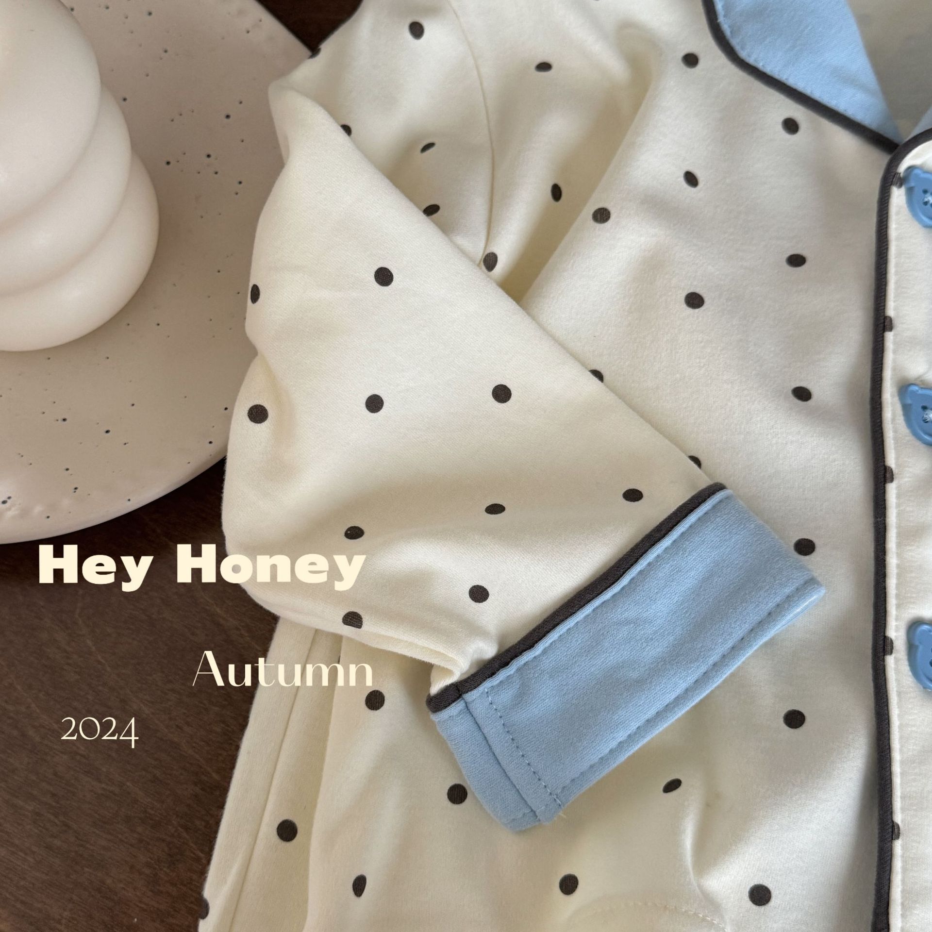 봄과 가을에 어울리는 크고 작은 롤 귀여운 프린트 한국식 단일 행 오픈 버튼 투피스 부모-자식 잠옷 세트 홈웨어