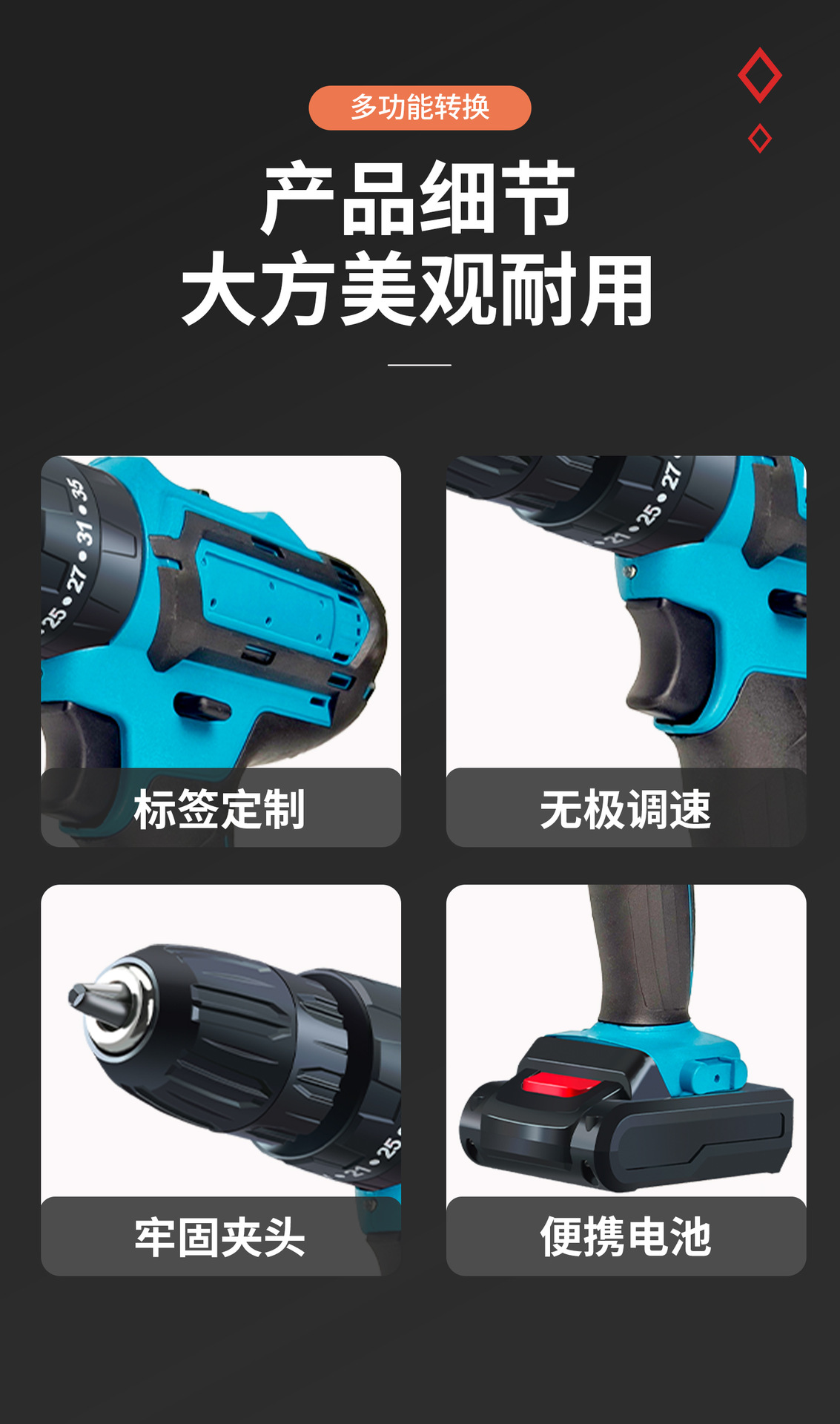지원 가공 도매 대외 무역 블루 충격 드릴 충전식 핸드 드릴 다기능 리튬 전기 드릴 전기 드라이버
