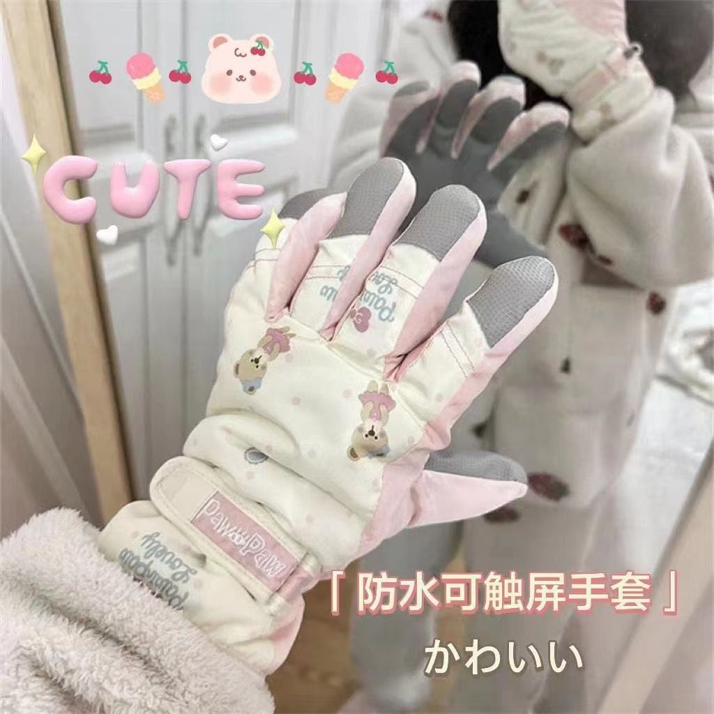 여자 겨울 따뜻한 기모 두꺼운 스키 장갑 미끄럼 방지 발수 터치 스크린 따뜻한 사이클링 코튼