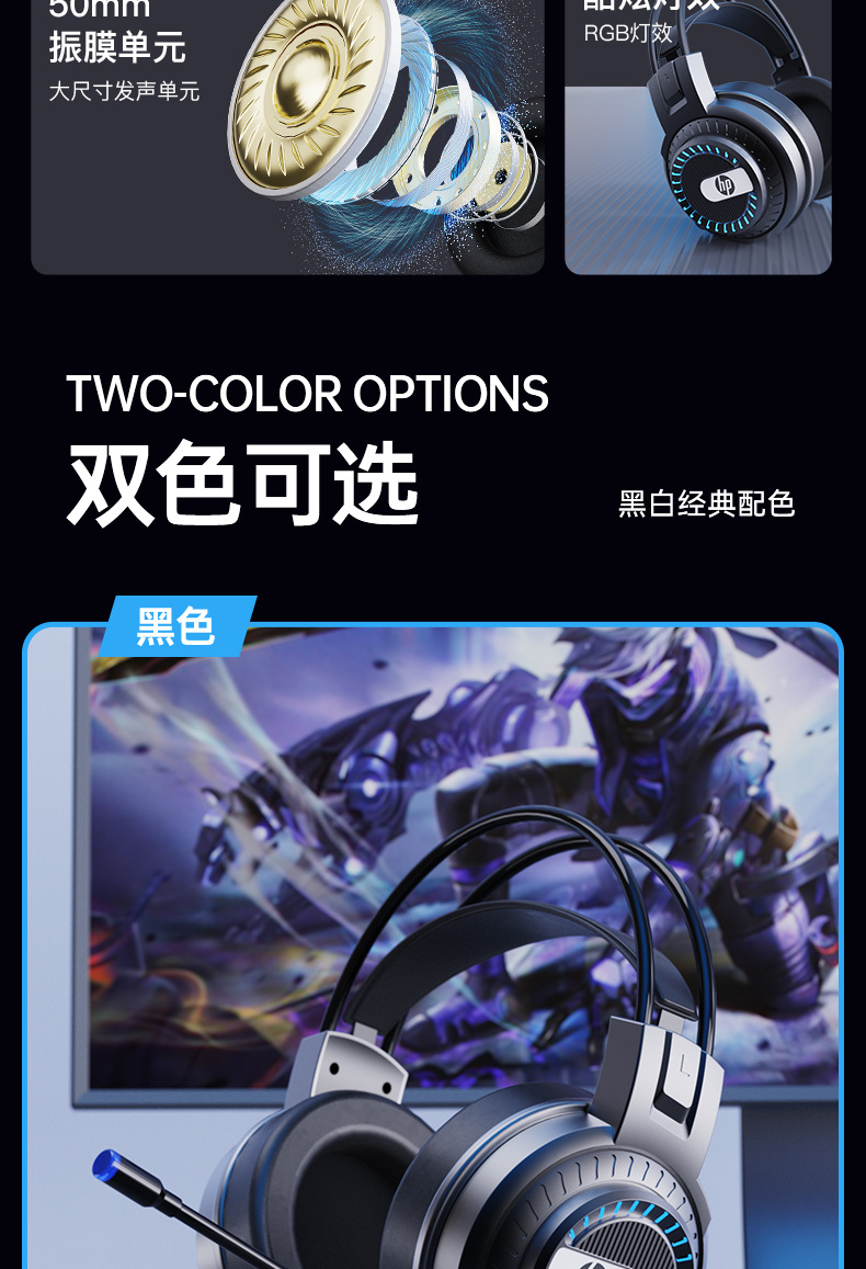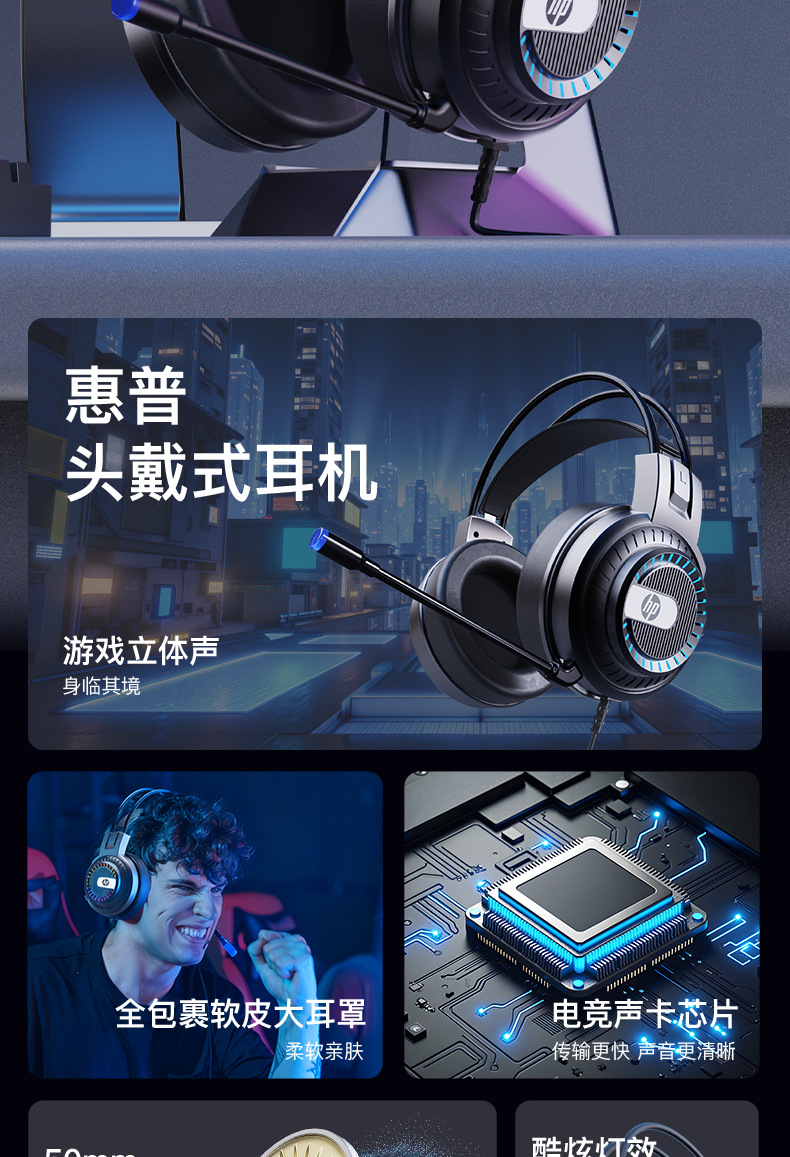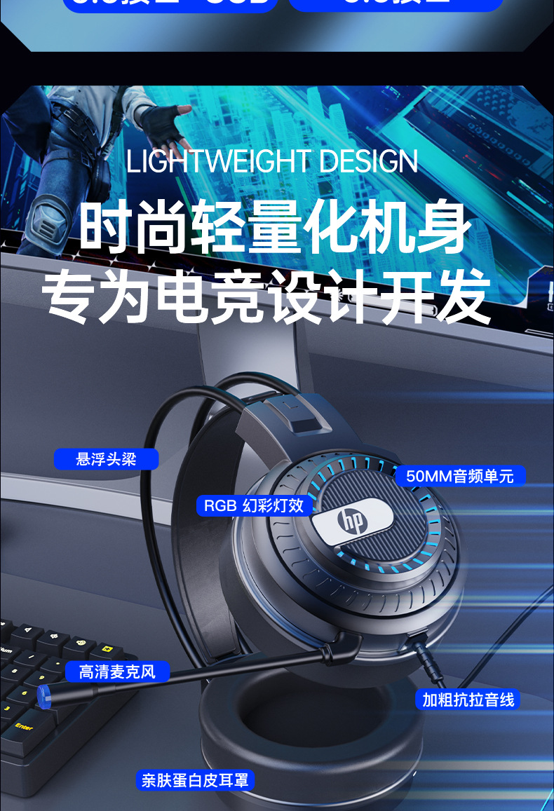 HP/HP 8008U 헤드 장착형 유선 헤드셋 e-스포츠 게임 데스크탑 컴퓨터 노트북 헤드셋 국경 간 도매스토어 가기